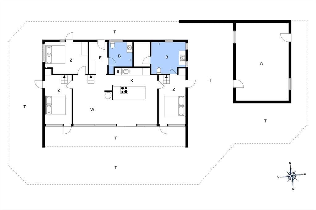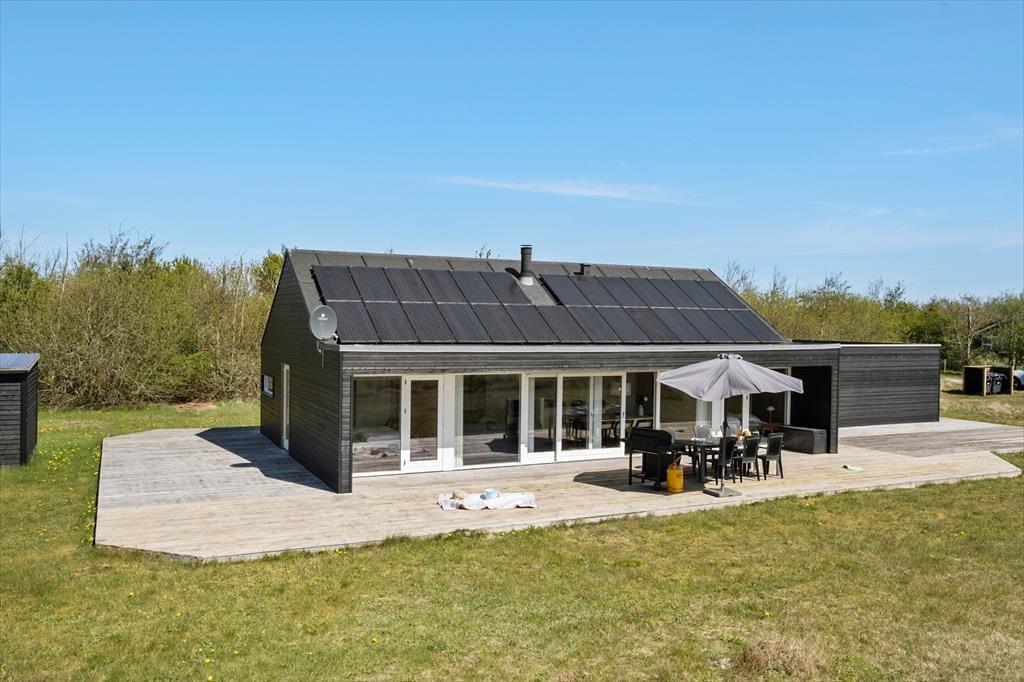 Das Ferienhaus ist ein schöner Bau aus dem Jahre 2009 und ist 90 m2 groß, und hierzu kommt noch ein Anbau von 29 m2, welcher z.Zt. zu einem Aktivitätsraum mit Tischtennis, Billard und Darts umgebaut wird. In beiden Gebäuden ist die Einrichtung hell und freundlich mit Interieur von ordentlicher Qualität. Der Bauplan ist perfekt für 6 Personen, und im Inneren finden Sie drei gute Schlafzimmer, welche alle mit komfortablen Doppelbetten ausgestattet sind, und außerdem gibt es zwei geräumige Badezimmer mit Dusche und Fußbodenheizung. In Mitten des Hauses befinden Sie Küche und Wohnzimmer: es ist ein schönes Wohnzimmer mit offenem Dachgeschoss und einer grossen nach Süden gewandten Fensterpartie sowie ein Kaminofen, Schlafboden und ein Flachbild TV mit deutschen Sendern – und wenn Sie dänisches Fernsehen sehen möchten, können Sie dieses über Chromecast streamen. Nicht zuletzt muss erwähnt werden, dass sich auf dem Dach des Ferienhauses Solarzellen befinden, weshalb der ganze Elektrizitätsverbrauch in der Miete enthalten ist.