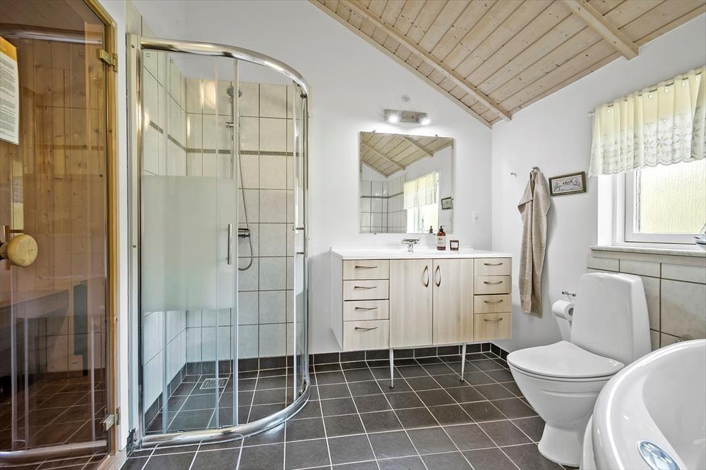 Auf einem 1.672 m² großen Naturgrundstück, nur 100 Meter vom fantastischen Spiel- und Aktivitätsgelände des Tranum Ferieby entfernt, erwartet Sie dieses gemütlich und gut eingerichtete Ferienhaus. Das Haus besticht unter anderem mit einem Kaminofen im Wohnraum sowie einem Whirlpool und einer Sauna in einem der beiden Badezimmer. Dank der wohldurchdacht aufgeteilten Wohnfläche können in diesem Haus zwei befreundete Familien sehr schön gemeinsame Urlaubstage verleben.