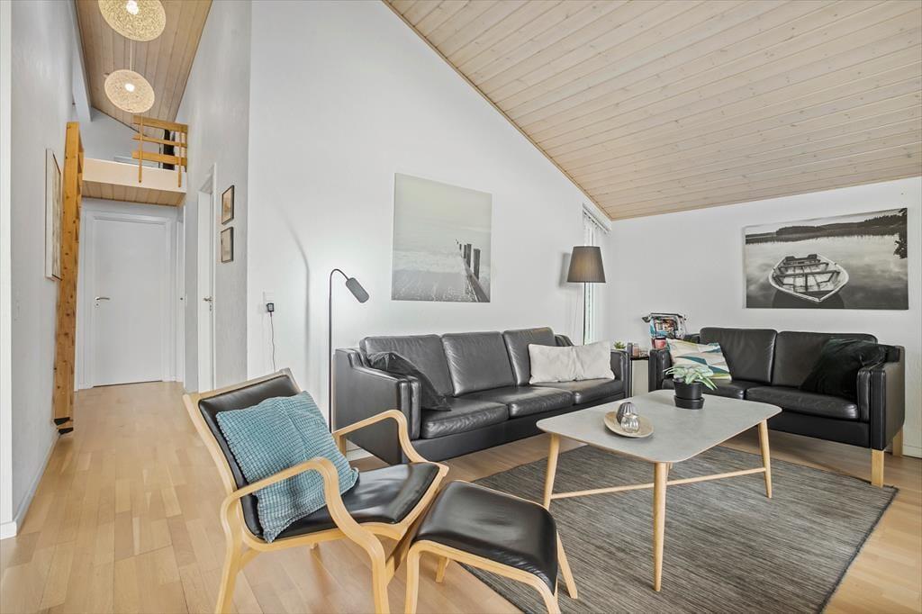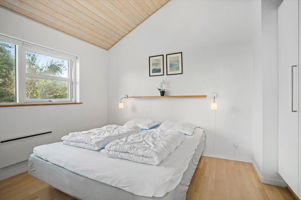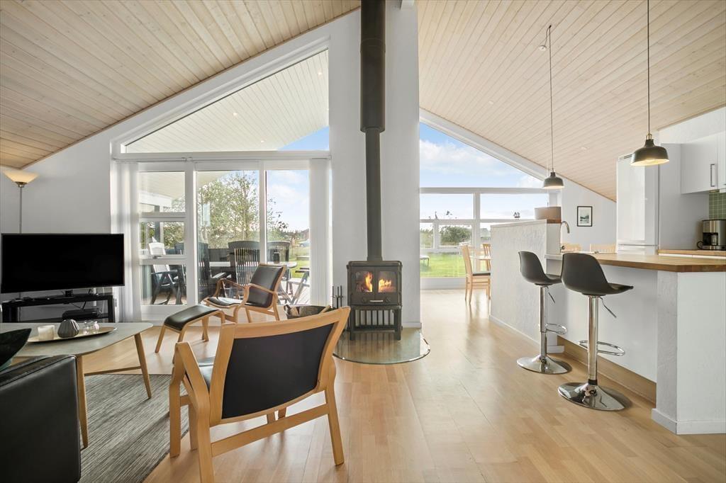 Das 97 m² große Urlaubsdomizil beherbergt mit seinen drei Schlafräumen bis zu acht Gäste. Zwei der Schlafräume beinhalten jeweils ein Doppelbett. Den dritten Raum mit zwei Etagenbetten können Sie sehr gut als "Schlafsaal" für Ihre Kinder nutzen, wenn Sie beispielsweise zusammen mit einer befreundeten Familie anreisen. Das große Badezimmer verfügt nicht nur über eine Waschmaschine und einen Wäschetrockner, sondern weiß zusätzlich mit einem Whirlpool und einer Sauna zu verwöhnen – perfekt nach einem langen Ausflug oder einem erfrischenden Spaziergang am Strand. Ein kleineres Gäste-WC ist ebenfalls vorhanden. Sämtliche Räumlichkeiten präsentieren sich hell und einladend. Dies gilt selbstverständlich auch für den Wohnraum, bei dem es sich um einen ansprechenden Aufenthaltsraum mit hohen Decken, großen Giebelfenstern, einem Kaminofen und einer tollen offenen Küche handelt.