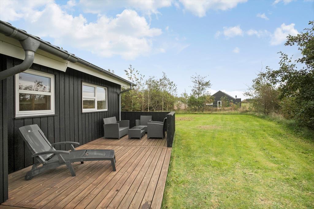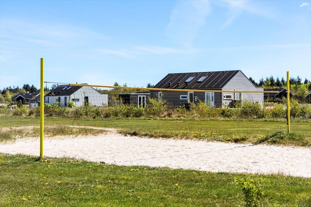 Für viel Spaß und Abwechslung bei Groß und Klein sorgt das schnell erreichte, weitläufige Spiel- und Aktivitätsareal des Ferienhausgebiets. Umgeben von sattem Grün können Sie sich unter anderem im Beachvolleyball, Basketball, Minigolf, Fußballgolf und vielen anderen Sportarten versuchen. Die kleinsten Gäste dürfen sich auf einen tollen Spielplatz freuen. Erwachsene trainieren Ihre Muskeln an den Fitnessgeräten. Alternativ lädt die landschaftlich schöne Umgebung zu Radtouren, Joggingrunden und Spaziergängen ein. Wenige Kilometer trennen Sie vom Tranum Strand, einem der attraktiven Strände der Jammerbucht. Zu den sehenswerten Naturperlen ringsum gehören außerdem das Fosdalen, Lien und das Waldgebiet Langdal Plantage.
