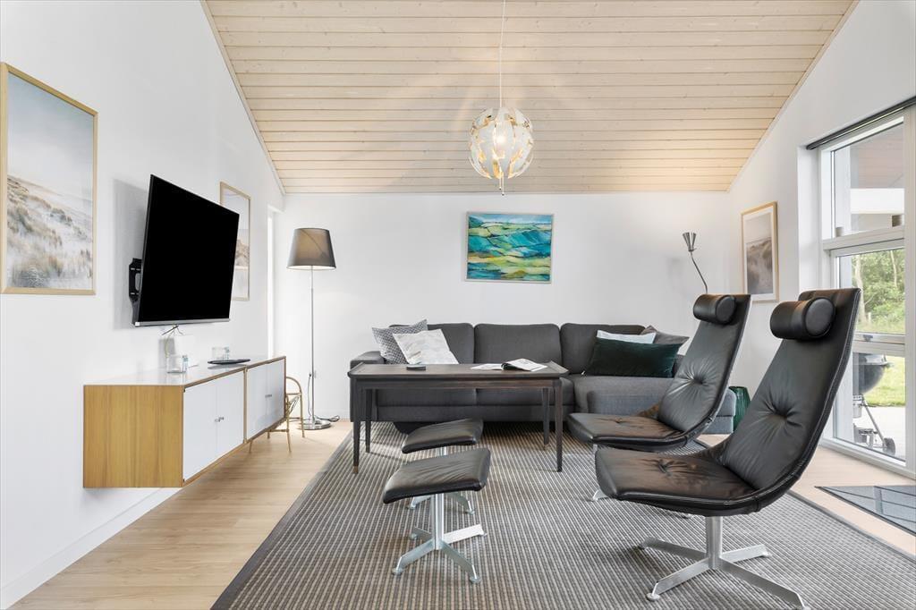 Möchten Sie Ihren Urlaub in einem modernen und gut eingerichteten Ferienhaus verbringen, das zudem über unterhaltsame und kostenlose Einrichtungen direkt vor der Tür verfügt? Dann ist dieses Ferienhaus auf der Kronvildtvej 208 in der Tranum Ferienby die ideale Wahl. Mit stilvollen Möbeln, einer gemütlichen überdachten Terrasse und luxuriösen Wellness-Einrichtungen bietet dieses Haus alles für einen gelungenen Urlaub.