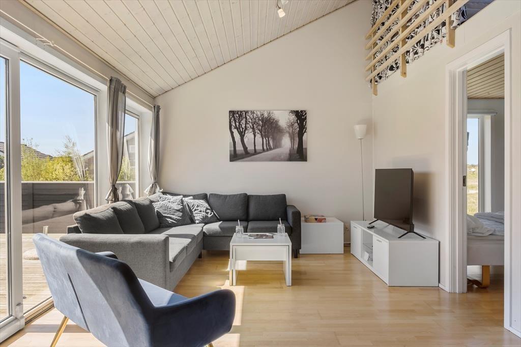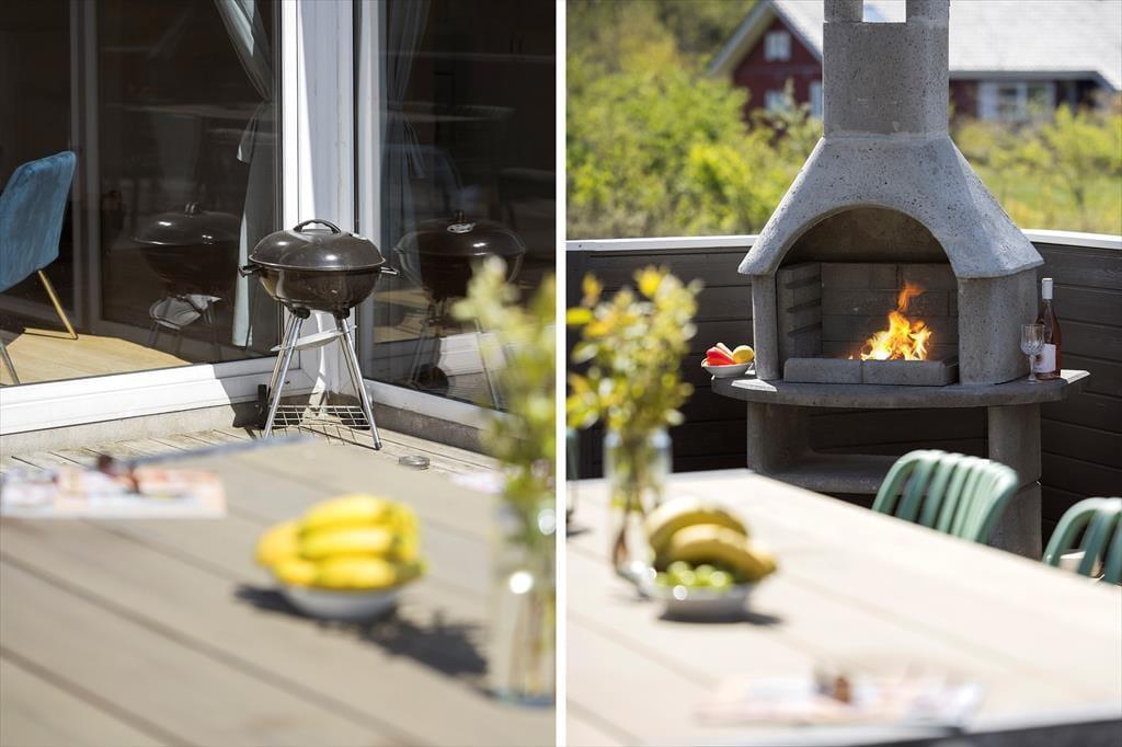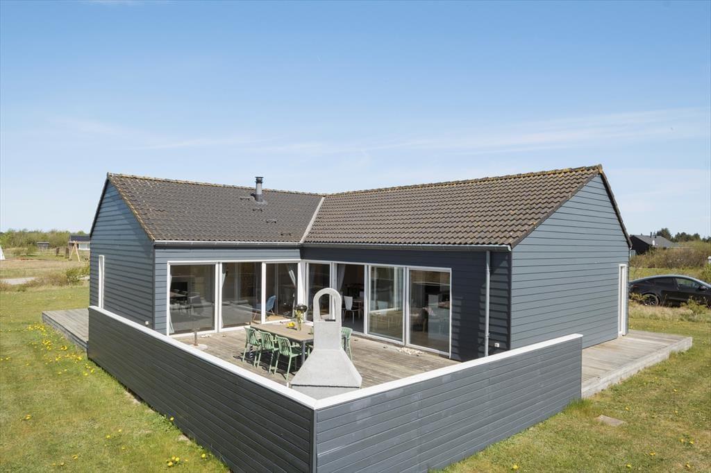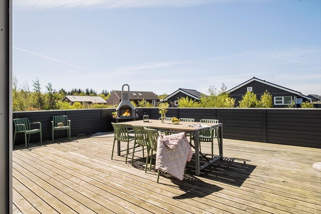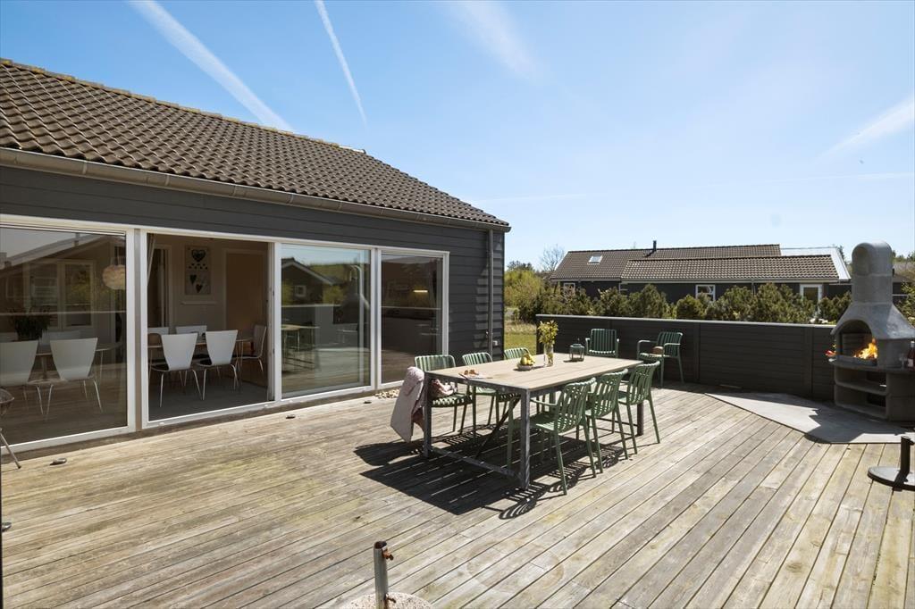 Die Terrasse, die direkt vom Wohnzimmer aus zugänglich ist, ist der perfekte Ort, um die Ferien an der frischen Luft zu genießen. Hier gibt es guten Windschutz, sodass du bei einer Tasse Kaffee oder einem guten Buch entspannen kannst – unabhängig vom Wetter. Die Terrasse ist mit bequemen Gartenmöbeln ausgestattet und lädt zu gemütlichen Grillabenden an den langen Sommerabenden ein. Der Garten bietet Platz zum Spielen und Entspannen, und durch die kurze Entfernung zum Gemeinschaftsbereich können die Kinder das Gebiet sicher erkunden, während die Erwachsenen auf der Terrasse zur Ruhe kommen.