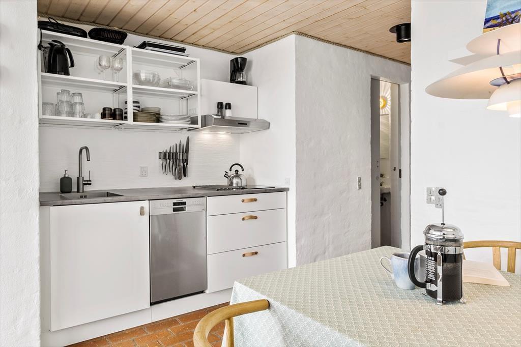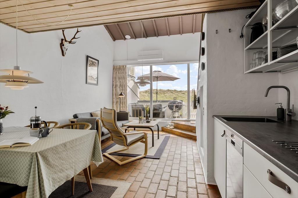 Die Wohnung befindet sich im „Tranum Klitgaard“ und ist in einem sehr gepflegten Zustand. Es herrscht eine helle und einladende Atmosphäre, und die Einrichtung im charmanten nordischen Stil umfasst schöne Bodenfliesen und weiß gestrichene Backsteinwände. Im Erdgeschoss bietet das Ferienapartment einen offenen Wohnbereich mit Wohnzimmer und einer modernen, gut ausgestatteten Küche – unter anderem mit Geschirrspüler. Hier kann man kochen und gleichzeitig am Esstisch das Gespräch mitverfolgen. Es gibt zudem ein Schlafzimmer mit Doppelbett sowie ein Badezimmer im Erdgeschoss. Im Obergeschoss befindet sich ein weiteres geräumiges Schlafzimmer.