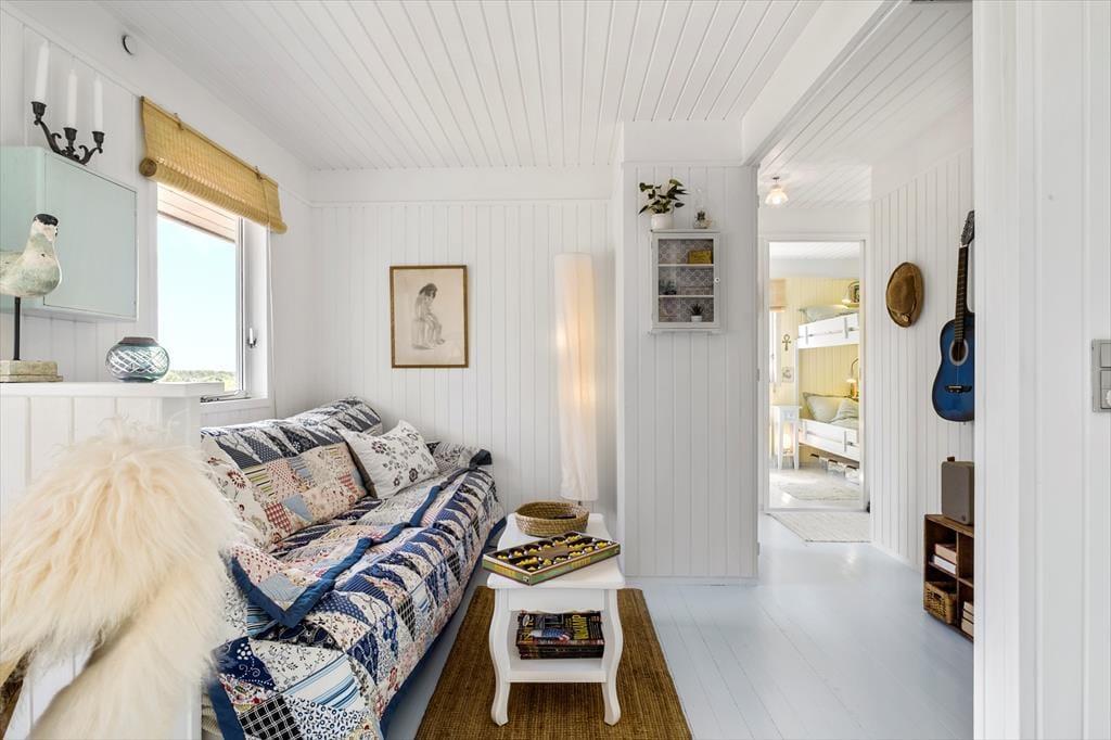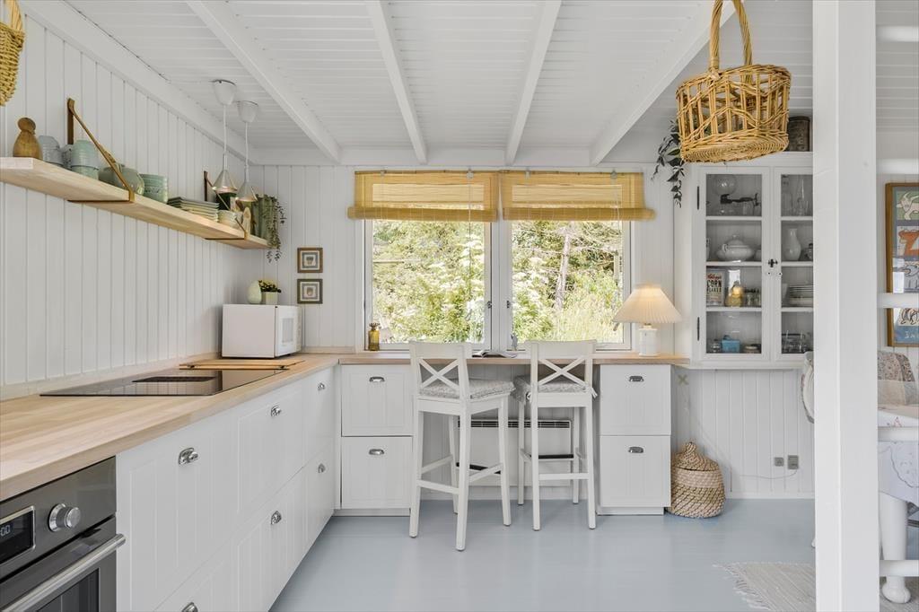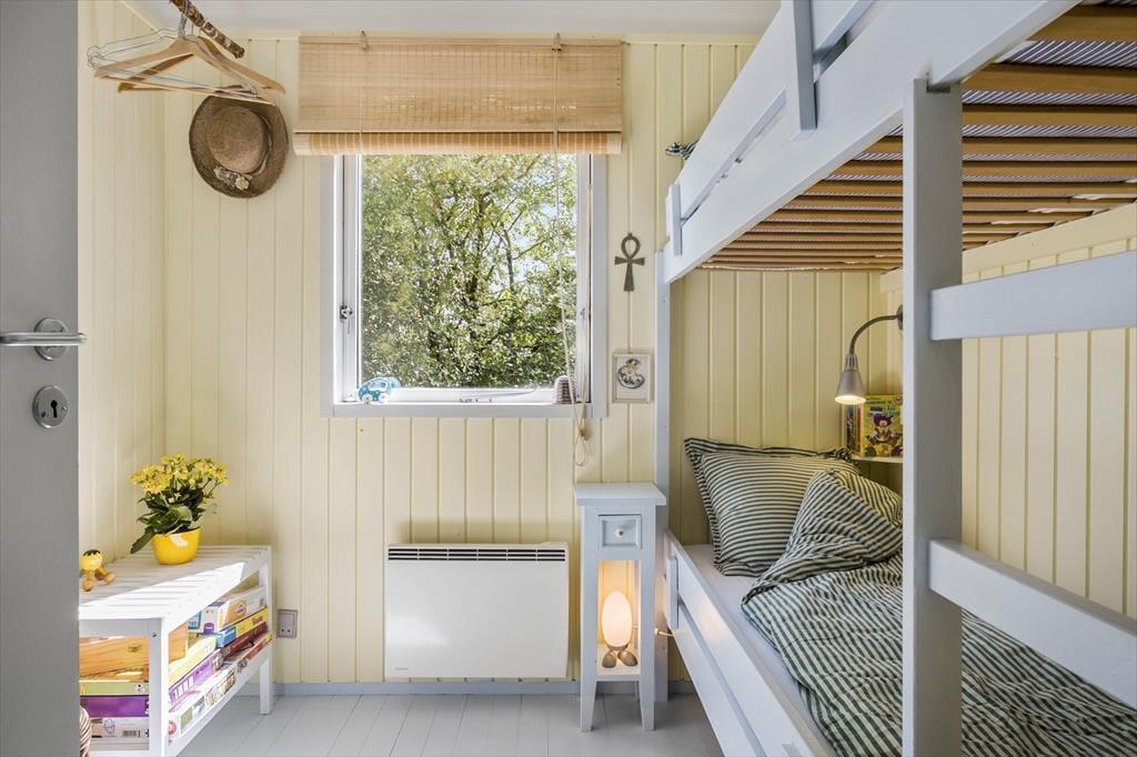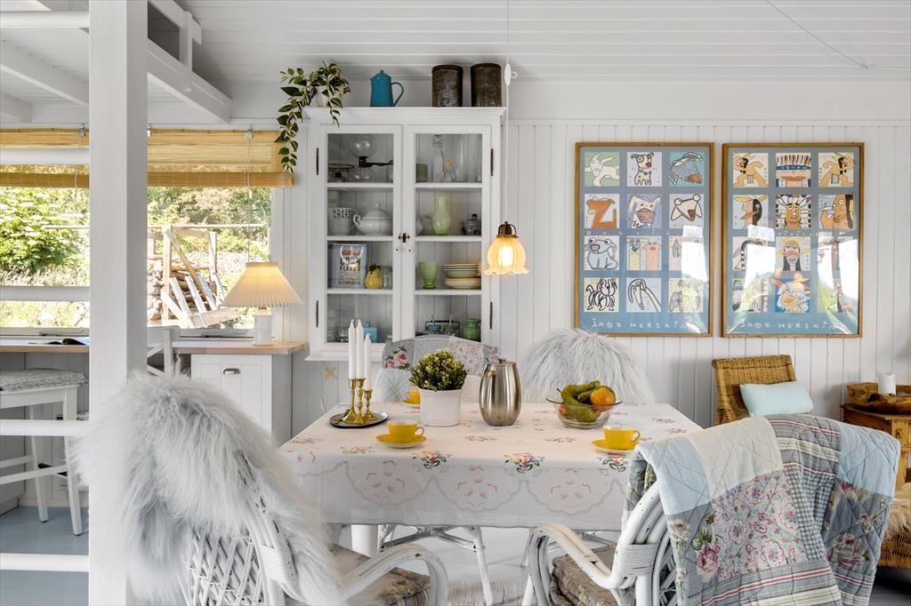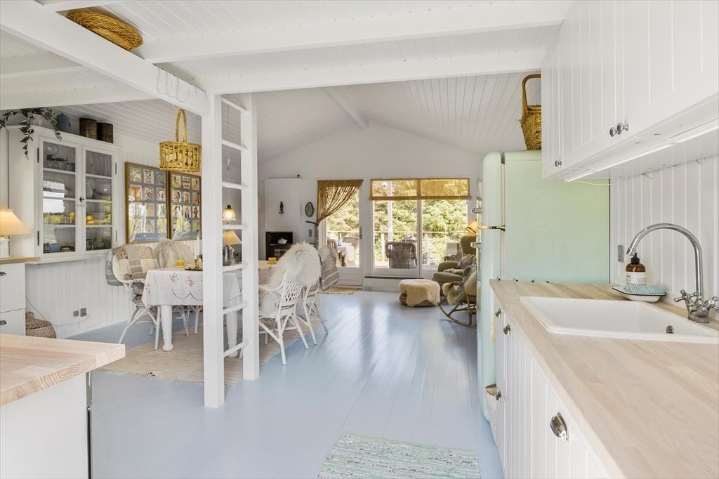 Dieses 66 m² große Ferienhaus strahlt pure dänische Sommerhaus-Idylle aus. Die Einrichtung ist ein stimmungsvolles Zusammenspiel aus neuen und alten Möbeln, liebevoll ausgewählten Dekorationen und weichen Textilien – das schafft eine warme und persönliche Atmosphäre. Die charmante Landhausküche passt perfekt zum Stil des Hauses – hier gibt es keinen Geschirrspüler, und genau dieses kleine Ritual des gemeinsamen Spülens schenkt euch Zeit für Gespräche, Lachen und Ruhe. Gleichzeitig bietet die Küche viel Arbeitsfläche und ist bestens ausgestattet für alle Ferienmahlzeiten. Direkt anschließend befindet sich ein kleines, gemütliches Fernsehzimmer, ideal für entspannte Abende mit einem Buch oder Film. Es gibt zwei Schlafzimmer – eines mit Doppelbett und eines mit Etagenbett. Ein kleines, aber ganz besonders stimmungsvolles Ferienhaus, in dem Natur, Nähe und Privatsphäre für unvergessliche Urlaubstage sorgen.