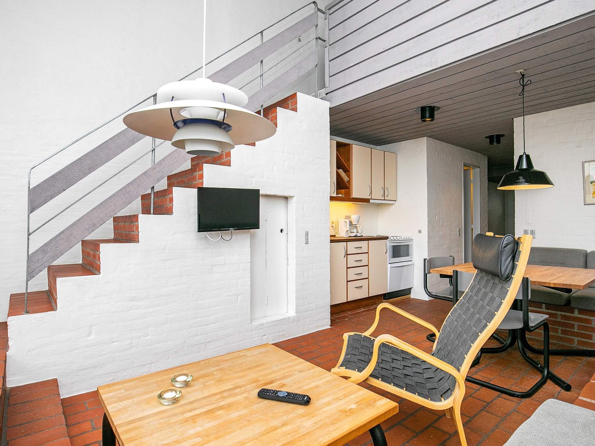 Ferienwohnung bei Tranum Strand. Die Wohnung ist mit einem Schlafzimmer im Erd- sowie zwei Schlafzimmern im Obergeschoss eingerichtet. Im Parterre liegen auch der Küchen-/Wohnbereich mit Zugang zur Terrasse und ein separates Duschbad und ein WC. Alles ist hier gepflegt und in Ordnung.