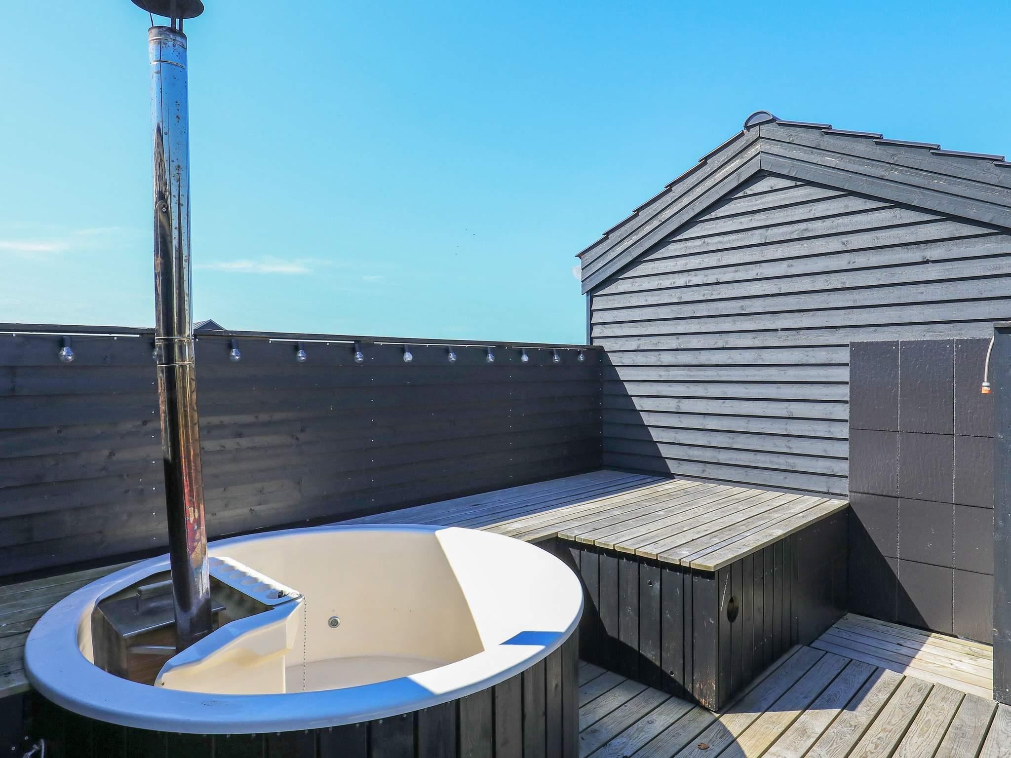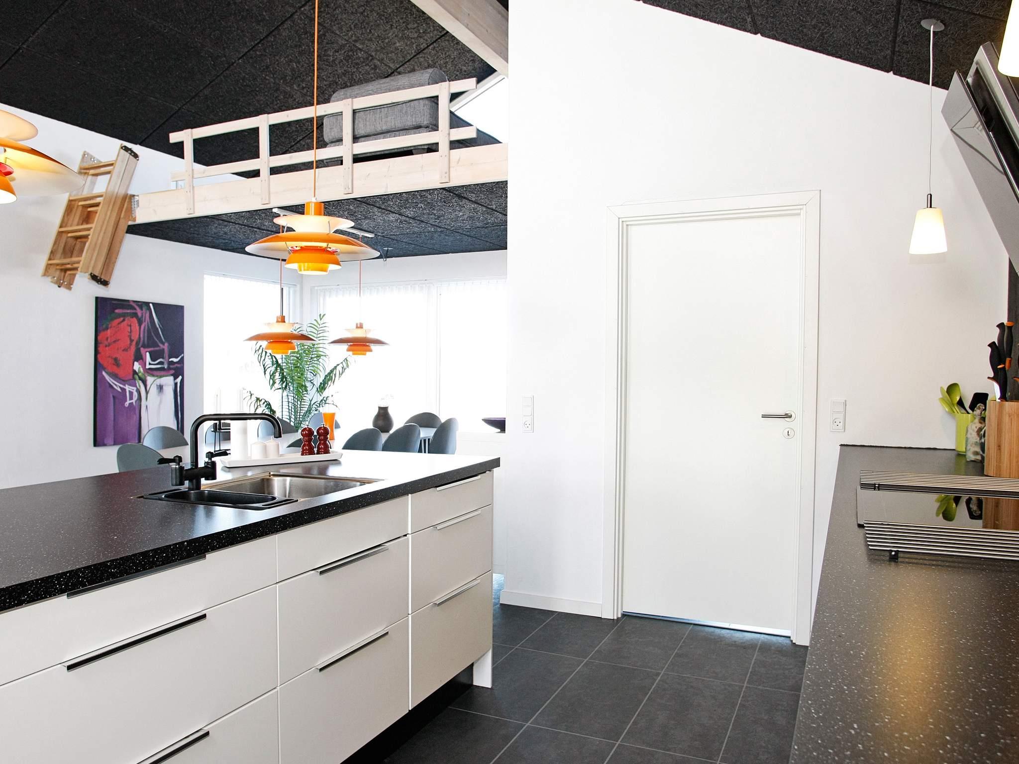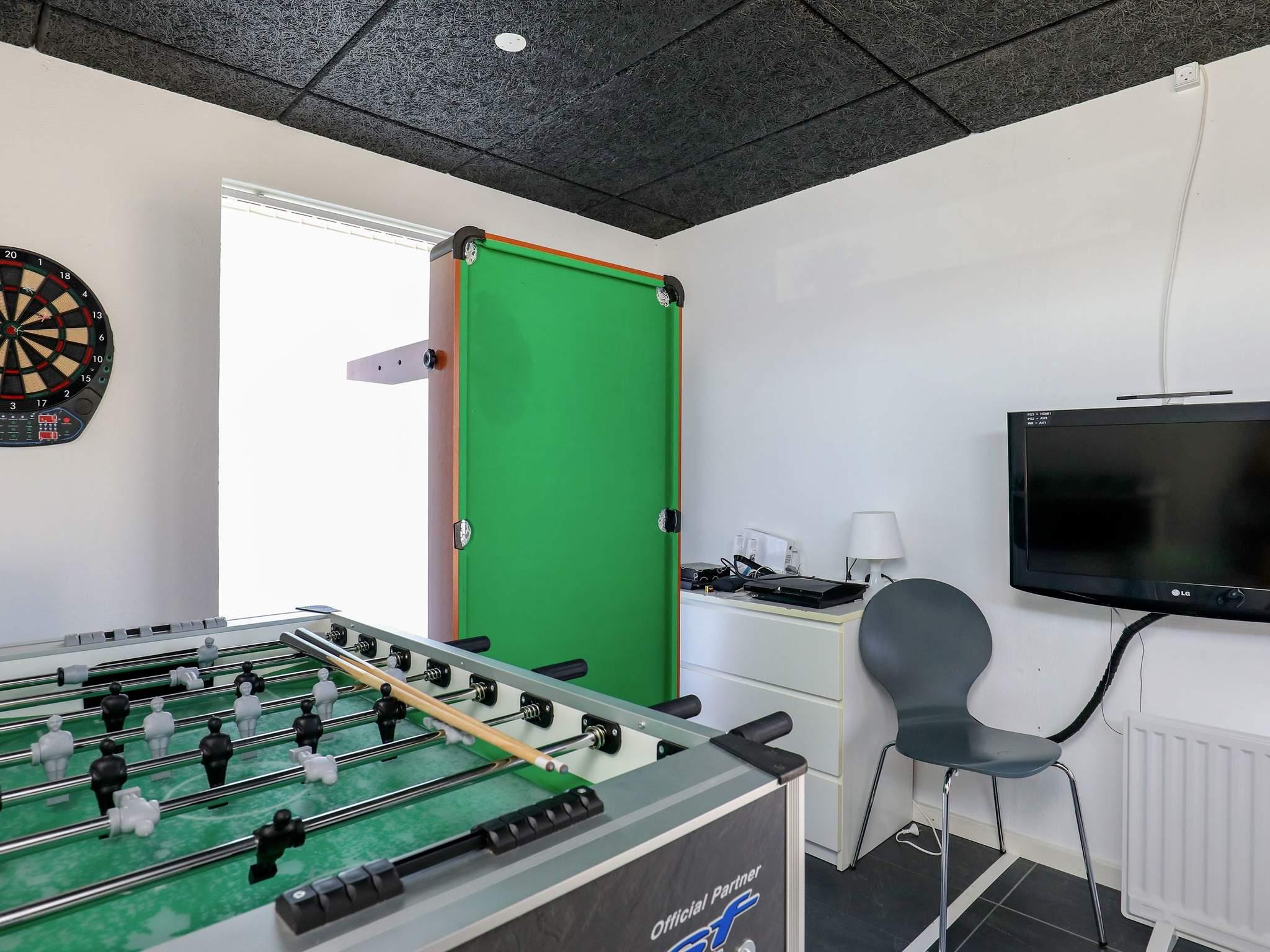 Das Haus besticht durch ein modernes und exklusives Interieur mit offener Wohnküche, drei Schlafzimmern – alle mit direktem Zugang zur Terrasse – und einem Loft mit zwei Zustellbetten. Das Badezimmer verfügt über eine Whirlpool-Badewanne und Zugang zur Sauna. Zusätzlich gibt es ein Gäste-WC mit Dusche. Die Küche ist praktisch ausgestattet mit Arbeitsfläche, Waschmaschine und Trockner. Fußbodenheizung in allen Räumen sorgt ganzjährig für angenehme Temperaturen und mehrere bodentiefe Fenster lassen viel Licht herein und schaffen ein offenes Raumgefühl. Eines der Schlafzimmer verfügt über einen eigenen Fernseher sowie ein zusätzlicher Kühlschrank für Getränke ist vorhanden. Für Gemütlichkeit und Wärme sorgt ein Bioethanol-Kamin, der eine geruchsfreie Atmosphäre schafft. Der Eigentümer hat ein harmonisches Interieur geschaffen, in dem modernes Design und hochwertige Möbel mit Kunst und Dekoration zu einem stilvollen Ganzen verschmelzen. Gelegen auf einem offenen Naturgrundstück in einer ruhigen Ferienanlage mit Zugang zu einem gemeinschaftlichen Spielplatz und Ballspielplatz, bietet die Anlage beste Voraussetzungen für einen erholsamen und erlebnisreichen Urlaub.