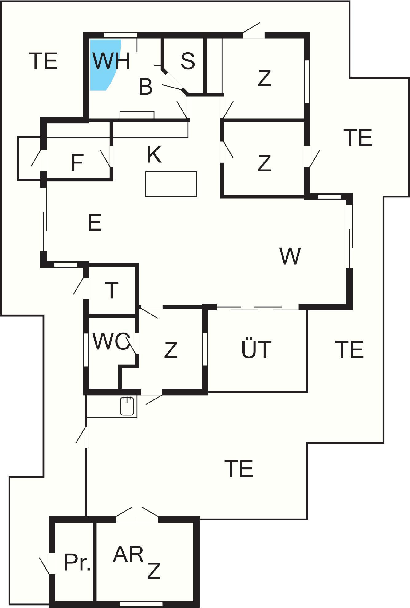 Und: Innenhof, Terrasse, überd. Terrasse, E-Heiz., Erdwärme, Luft-Luft-Wärmepumpe, Grill, Naturgrundst. 2000 m2, exklusive Möblierung, Ferienhausgebiet, Nichtraucherhaus