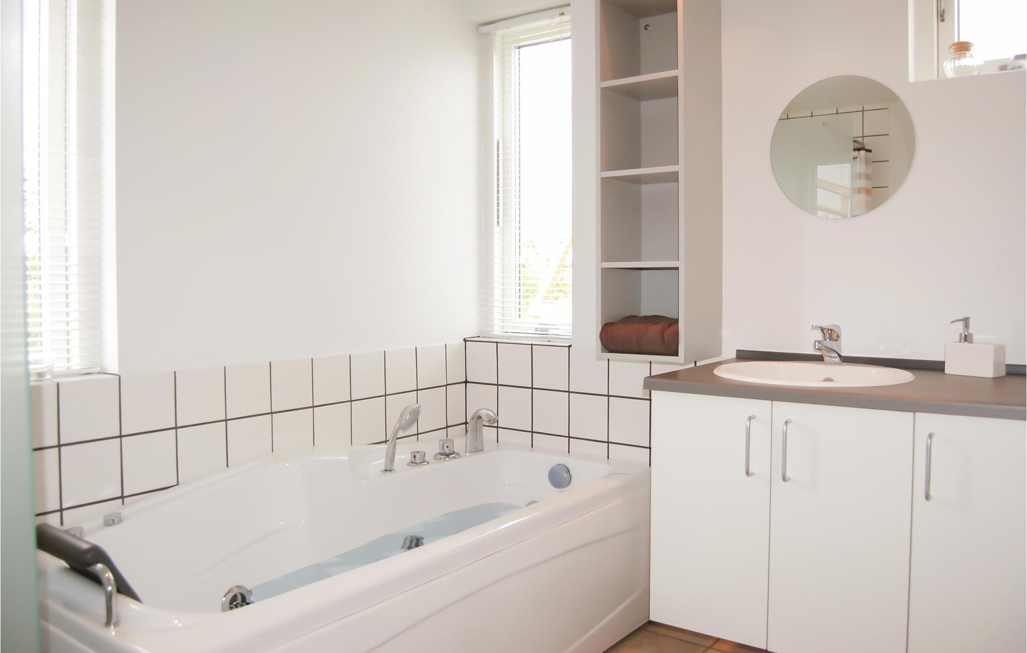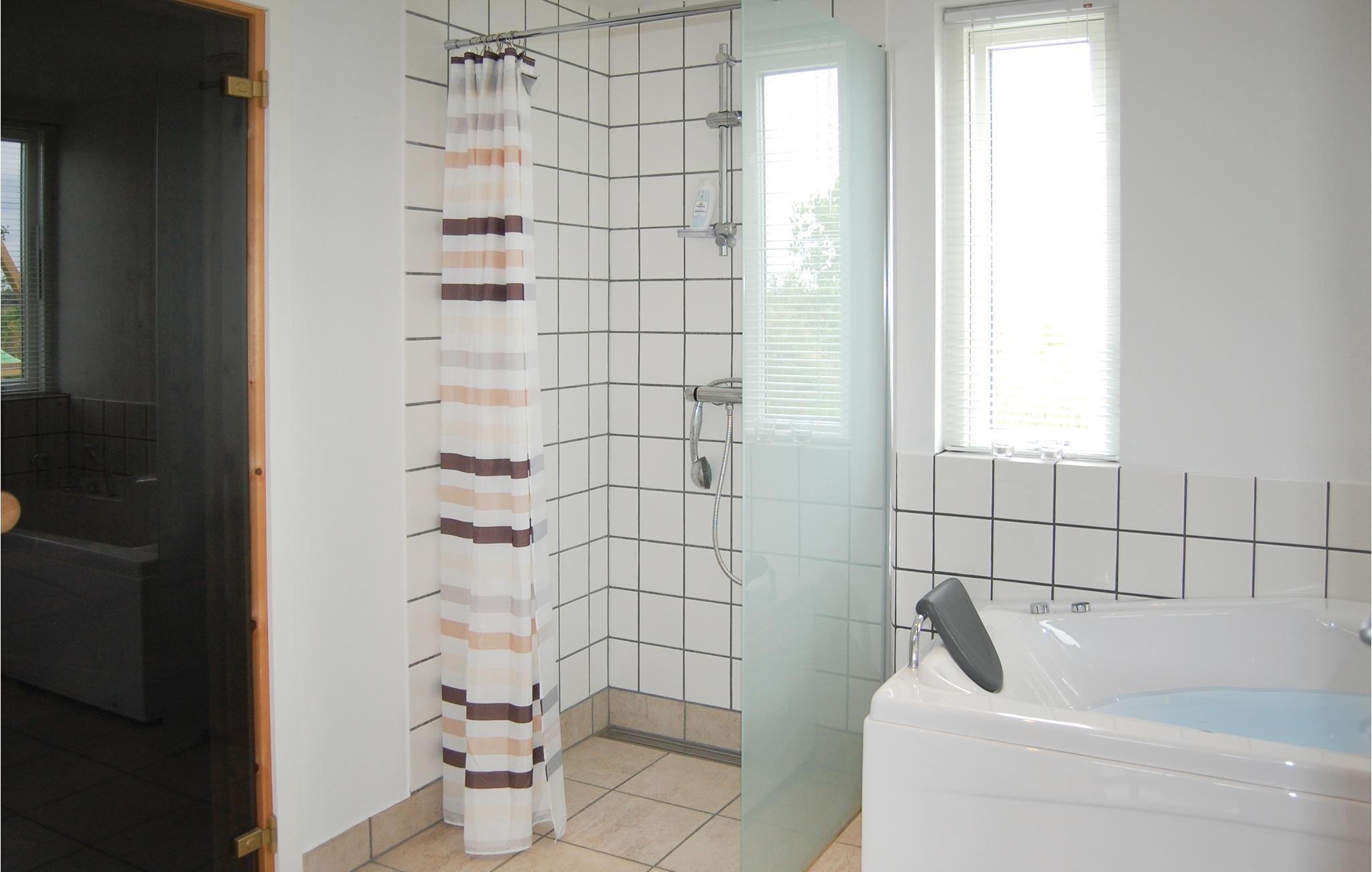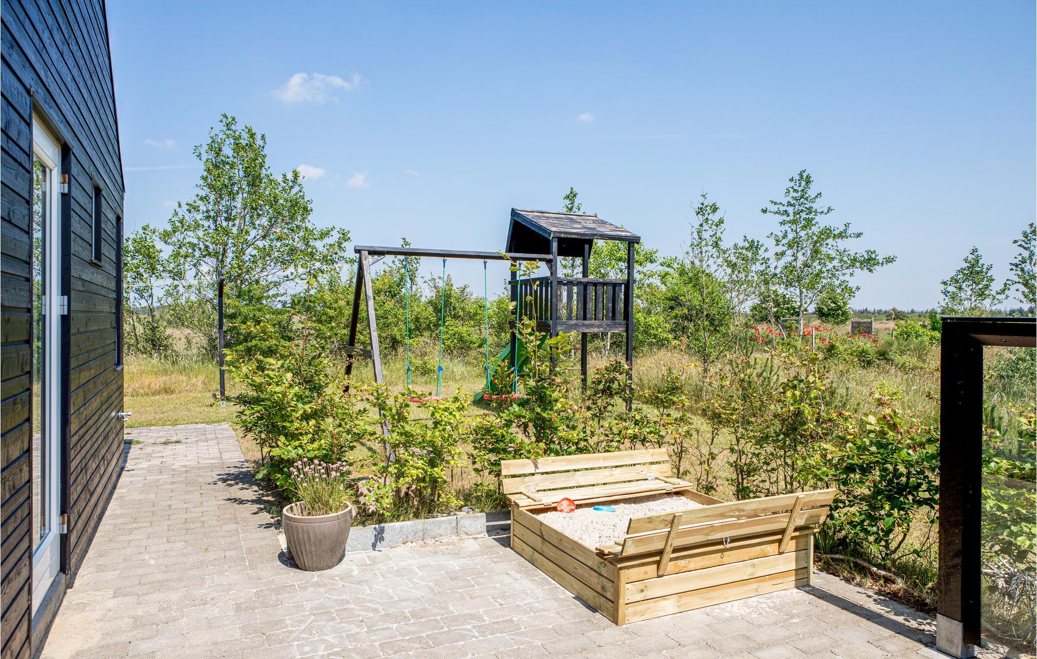 Auf einem gepflegten Grundstück liegt dieses schöne Ferienhaus. Die Umgebung ist ruhig und Sie genießen auch eine Aussicht auf ein offenes Gebiet. Es gibt einen kleinen Flur mit Zugang zum Badezimmer. Das Wohnzimmer ist hell, die Decke ist bis unter den First offen. Geschmackvoll abgestimmte Möblierung. Drei gute Schlafzimmer mit Doppelbetten, großes Bad mit Sauna und Whirlwanne. Die schöne Einrichtung lässt Sie gut entspannen, besonders im Freien, wo auch Schaukel und Sandkasten für Ihre Kinder vorhanden sind. Von einem Schlafzimmer kommen Sie auch auf die Terrasse. Außerdem gibt es einen abschließbaren Schuppen zur Aufbewahrung von Fahrrädern etc. Die Gemeinschaftsanlage lädt zu verschiedenen Aktivitäten ein, z. B. Fußball- oder Minigolf - Schläger sind im Haus vorhanden.
