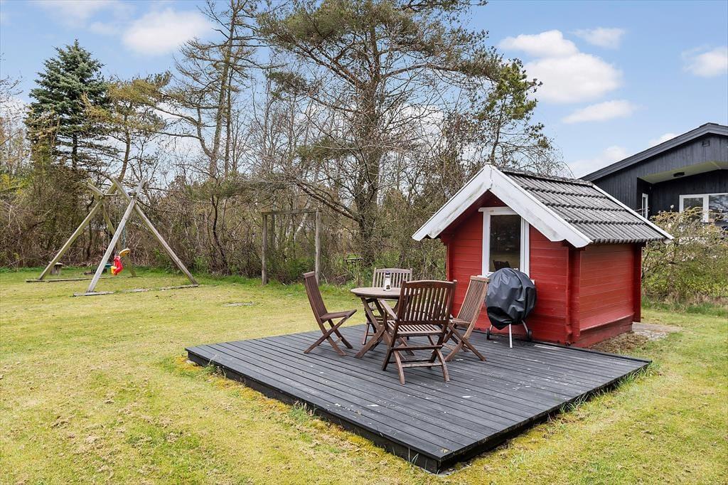 Treten Sie hinaus in den großen Garten, der sowohl zu Spaß als auch zur Entspannung einlädt. Es gibt viel Platz für ein Volleyballspiel, während die Jüngeren sich in der Sandkiste vergnügen oder die Schaukel genießen können. Der gemütliche Lagerfeuerplatz ist ideal, um zusammenzukommen und gute Gespräche zu führen oder vielleicht Marshmallows zu rösten. Es gibt auch ein kleines Annex im Garten, das ideal für zusätzliche Privatsphäre oder als Spielbereich für Kinder ist. Ob Sie nun nach aktiven Outdoor-Erlebnissen oder nach friedlichen Momenten in der Sonne suchen, das Haus bietet die perfekte Kulisse, um den dänischen Sommer zu genießen.