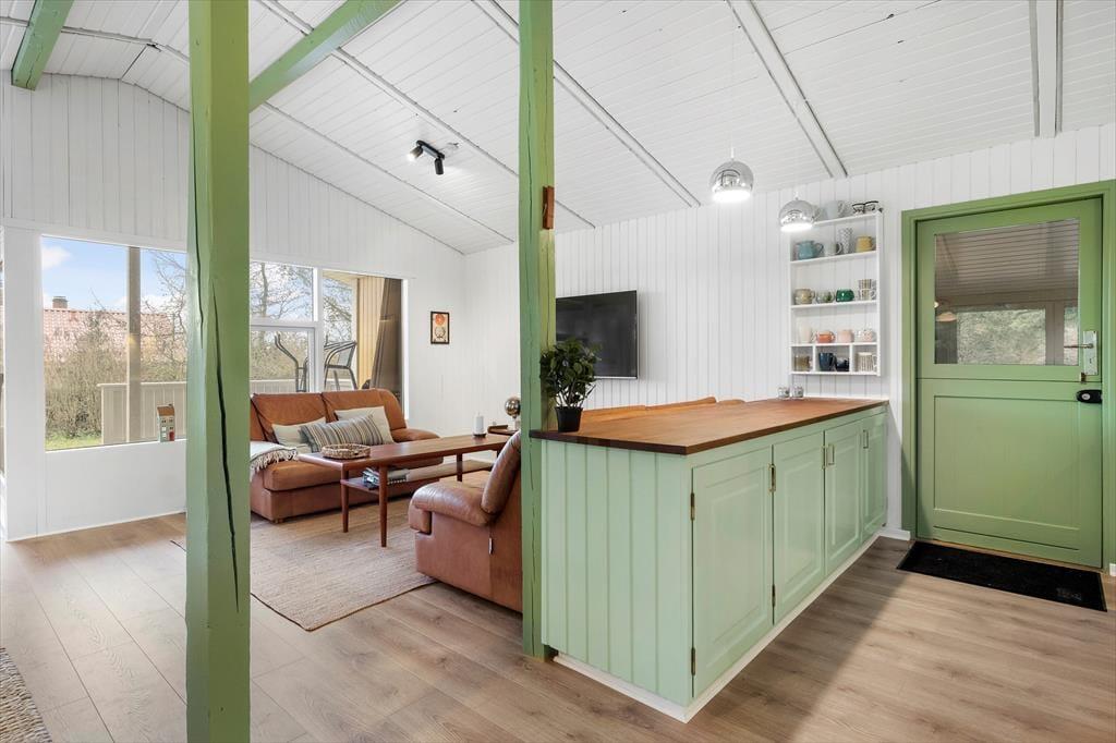 In der kleinen Sackgasse Monicasvej wohnen Sie friedvoll in kinderfreundlicher Umgebung. Ein System aus kleinen Wegen und Pfaden führt Sie durch das Ferienhausgebiet. Den Strand, an dem Sie baden, die Sonne genießen oder auch per Kajak und SUP-Board in See stechen können, erreichen Sie nach wenigen Minuten. Ein Spaziergang entlang der Küste ist bei jedem Wetter reizvoll. Am Strand laden eine Lagefeuerstelle und Picknickbänke zu gemütlichen Stunden ein. Das Steinzeitzentrum Ertebølle und der schöne Hafenort Løgstør stellen interessante Ausflugsziele dar. Falls Sie gern eine beschauliche Bootsfahrt unternehmen möchten, setzen Sie einfach von Rønbjerg per Fähre auf die bezaubernde Limfjordinsel Livø über.