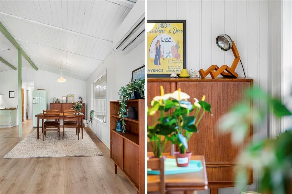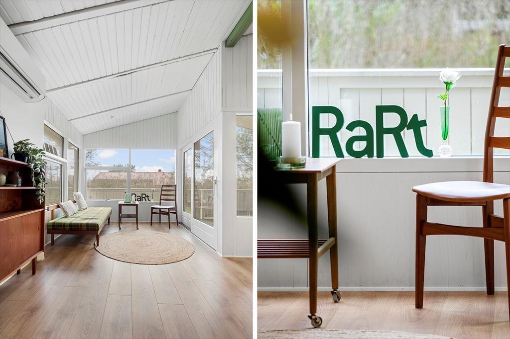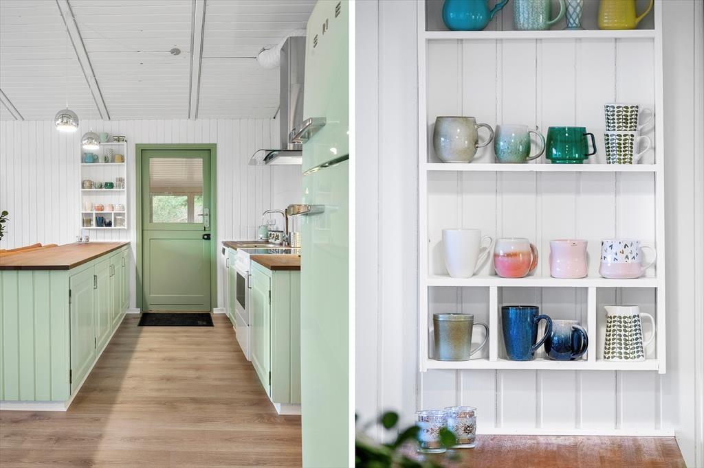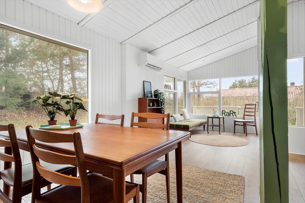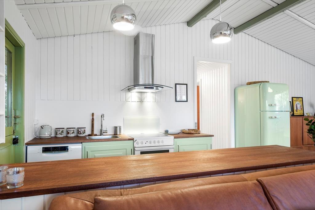 Das Ferienhaus wurde im Jahr 2023 einer Renovierung unterzogen. Zu den modernen Annehmlichkeiten zählen seither eine effektive Wärmepumpe, ein Flachbild-TV mit Chromecast und eine Rainshower-Dusche im Badezimmer. Die Möblierung im gefragten Retrostil verleiht den hellen, einladenden Räumlichkeiten Seele und Charme. Im Wohnraum lädt eine Liege zum Lesen und zu kleinen Pausen ein. Sie können am Esstisch beisammensitzen und spielen und es sich auf dem Sofa nach Herzenslust gemütlich machen. In der offenen Küche wird die Zubereitung der Mahlzeiten zum Vergnügen. Die Schlafplätze verteilen sich auf drei Schlafräume, von denen einer mit einem Doppelbett ausgestattet ist. Im zweiten Raum steht ein Etagenbett bereit und im dritten ein Schlafsofa. Insgesamt bietet das Ferienhaus Platz für fünf Erwachsene und ein Kind.