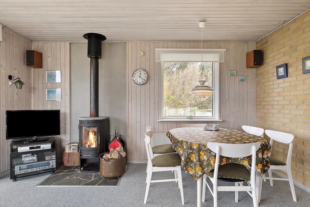 Diese Adresse ist ideal für dich, wenn du einen klassischen Sommerhausurlaub machen möchtest – mit Kartenspielen rund um den Esstisch und entspannten, gemütlichen Stunden auf dem Sofa. Wenn es draußen kühl ist, kannst du den Ofen anmachen, bevor du es dir gemütlich machst. Und wenn du hungrig wirst, liegt die Küche direkt neben dem Wohnzimmer, sodass es einfach ist, etwas zu Essen zuzubereiten. Es gibt drei Schlafzimmer, ein Badezimmer und einen zusätzlichen Aufenthaltsraum. Letzterer ist besonders praktisch, wenn ihr fünf Urlauber seid, die jeder für sich entspannen und sich mit Büchern, Handyspielen, Strickzeug oder Kreuzworträtseln beschäftigen.