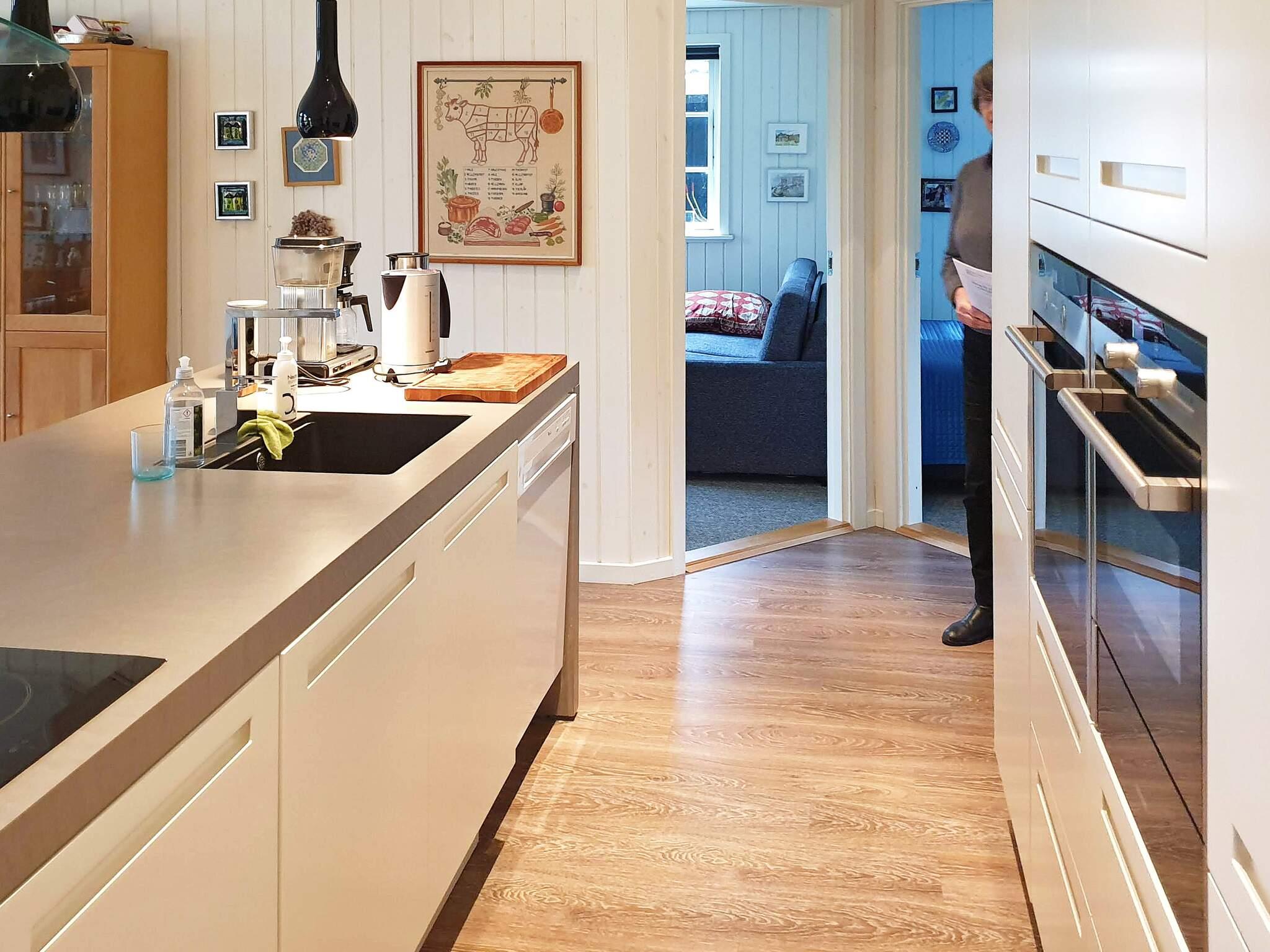 Das Ferienhaus ist hell und einladend und praktisch eingerichtet und verfügt über eine kombinierte Wohnküche. Das Wohnzimmer ist modern eingerichtet und verfügt über ein Radio, kostenloses Highspeed-Internet und einen Flachbildfernseher mit dänischen Sendern, darunter TV2, und verschiedenen internationalen Sendern. Die Küche verfügt über ein Cerankochfeld, eine Dunstabzugshaube, einen separaten Backofen mit Grill, eine eingebaute Mikrowelle/Kombibackofen, einen Kühlschrank und einen separaten Gefrierschrank mit 200 Litern Fassungsvermögen, eine Kaffeemaschine und einen Geschirrspüler.