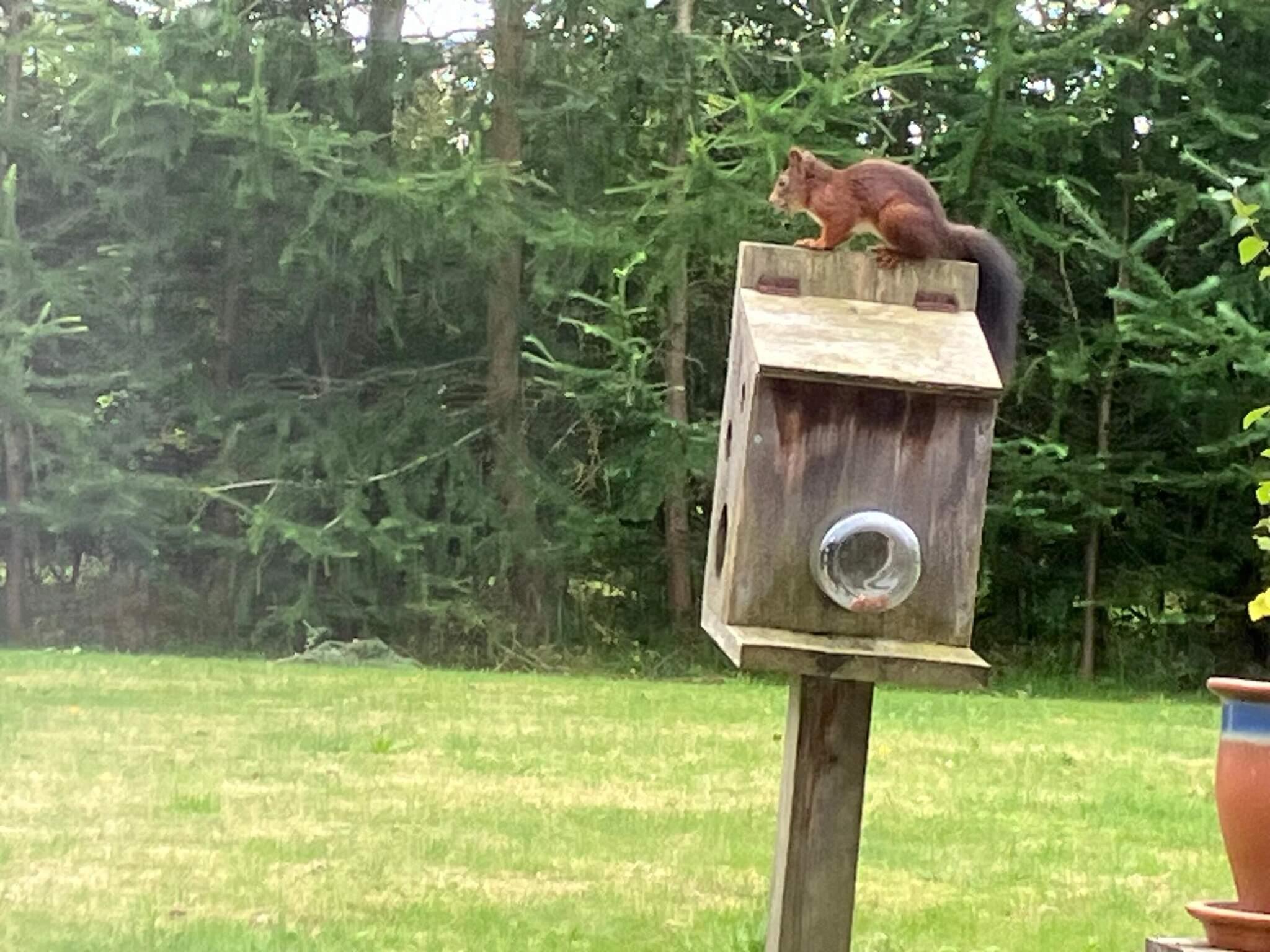 Am Haus befindet sich eine Ladestation für E-Autos. Es gibt eine überdachte Terrasse mit einem Holzkohlegrill und zwei Sonnenliegen. Verschiedene Gartenspiele stehen im Schuppen bereit.