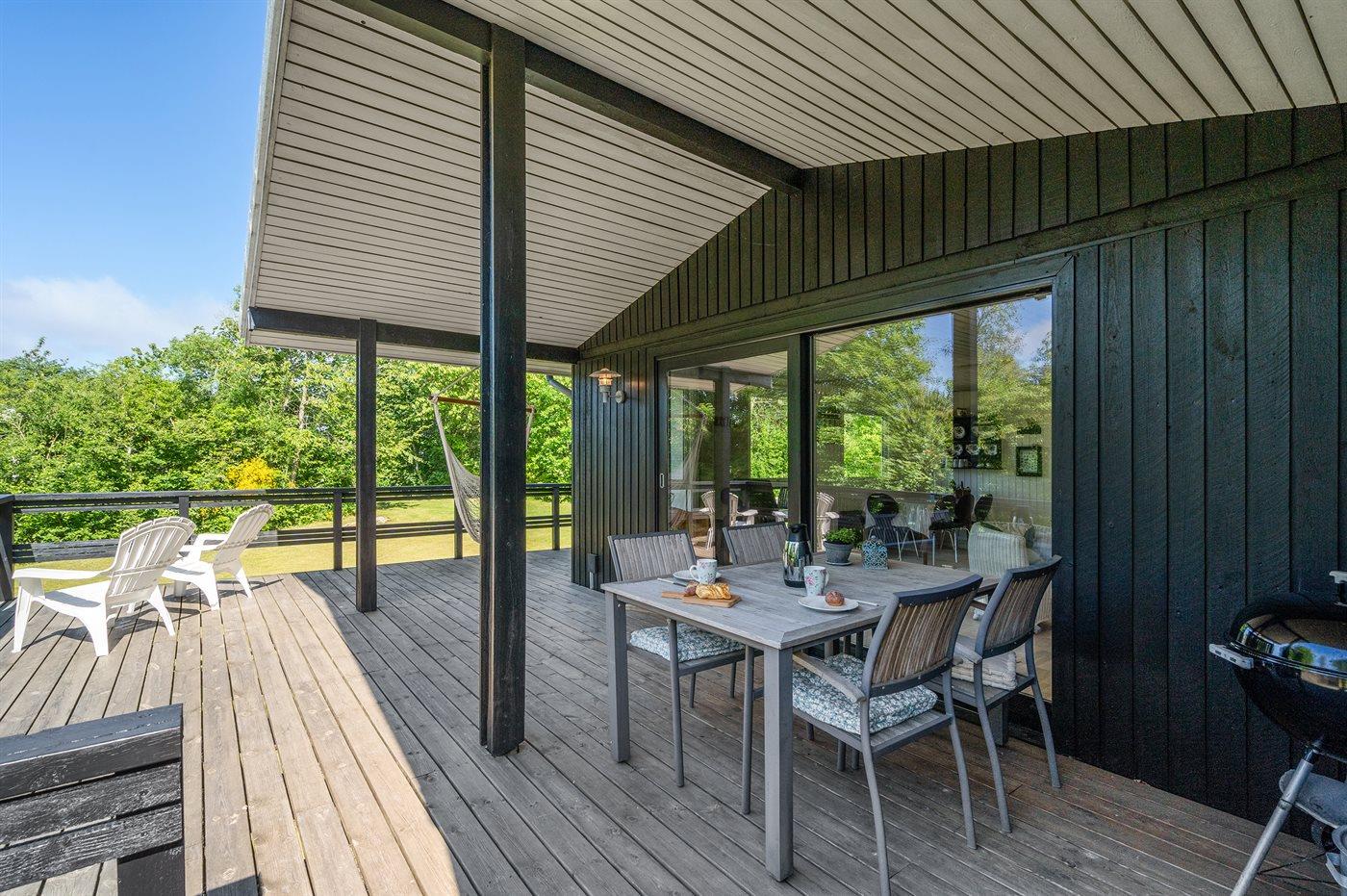 Die Ferienunterkunft liegt auf einem 1385 m² großen Naturgrundstück. Die Entfernung zum Fjord beträgt 700 m. Die nächste Einkaufsmöglichkeit liegt 800 m entfernt. In einem Abstand von 15000 m gibt es einen Golfplatz. Es steht ein 85 m² Terrassenareal zur Verfügung. Außerdem gibt es 10 m² überdachte Terrasse. Geräteraum. Parkplatz auf dem Grundstück.
