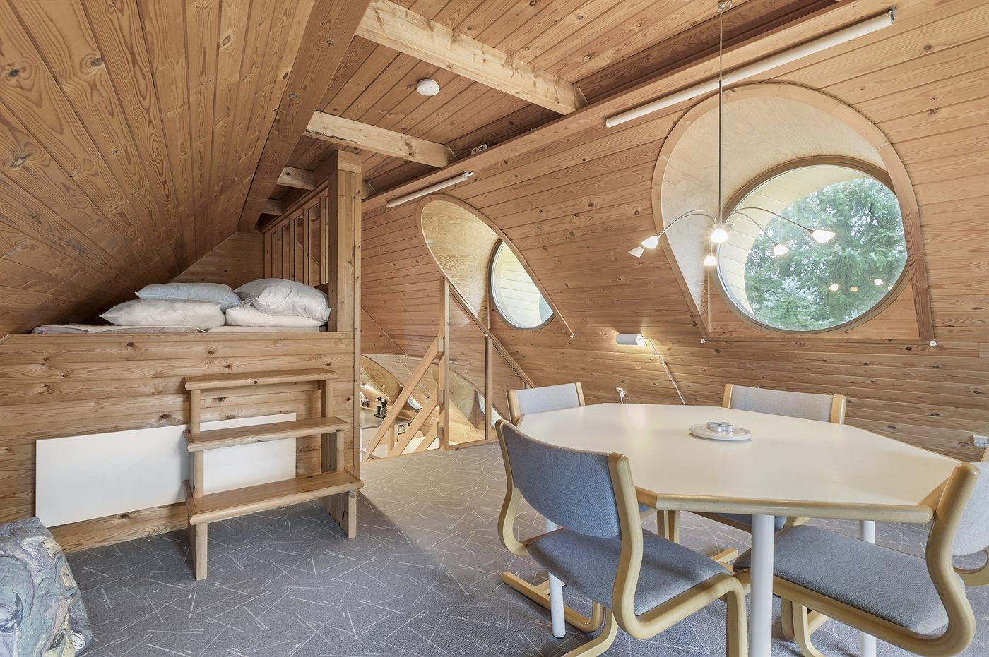 Es gibt einen Schlafraum. 4 Schlafplätze in Doppelbetten. 3 Schlafplätze in Einzelbetten. 2 Schlafplätze auf einer Doppelschlafcouch. 2 von diesen Schlafplätzen befinden sich im Gästehaus, 3 im Wohnzimmer und 2 im offenen Obergeschoss.