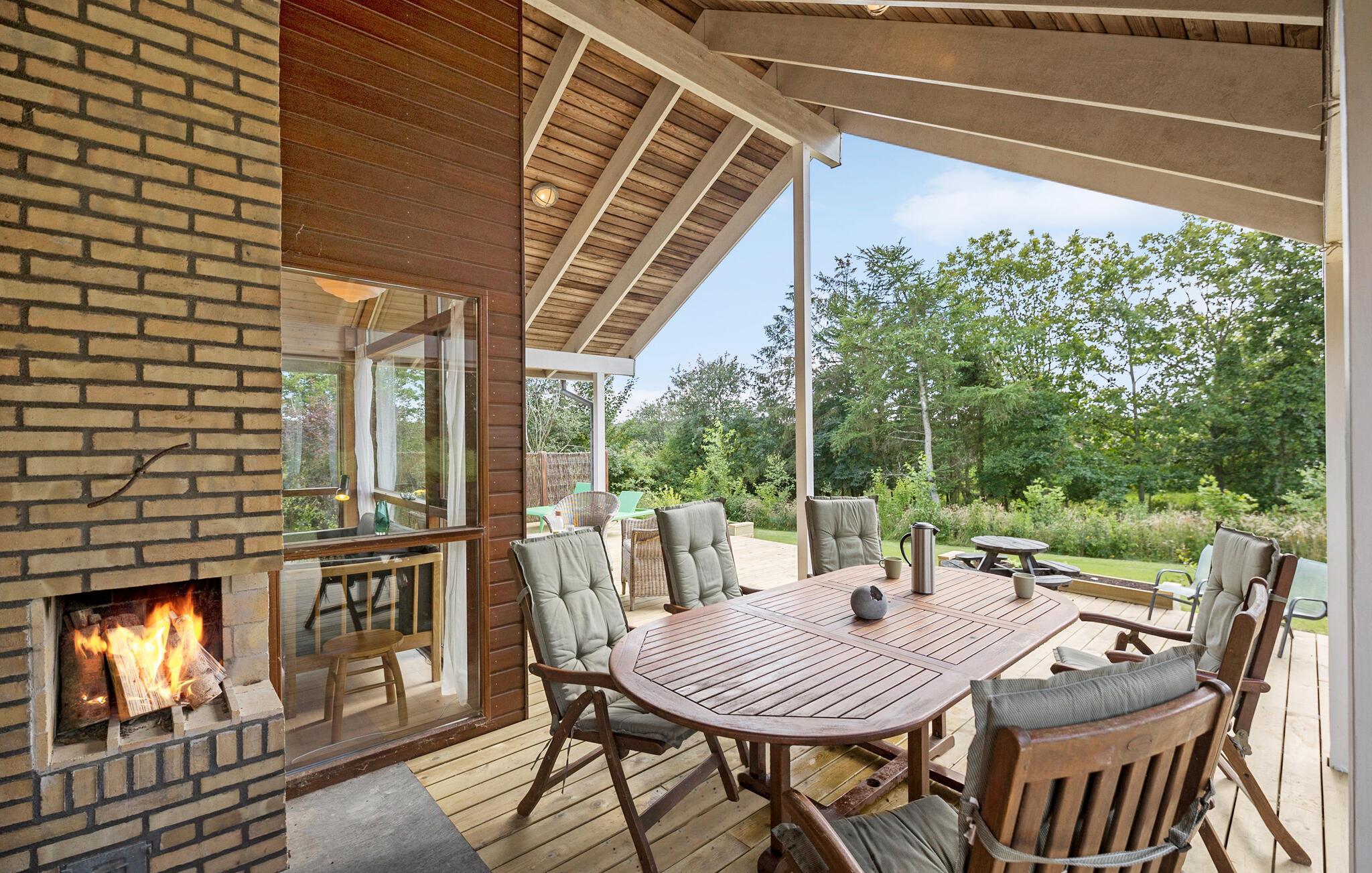 Nahe der Bjørnsholm Bucht beginnen Sie Ihren Tag voller Energie nach einer erholsamen Nacht in Ihrem gemütlichen Ferienhaus. Bereiten Sie in der gut ausgestatteten, geräumigen Küche eine heiße Tasse Kaffee zu und verwöhnen Sie Ihre Familie mit einem leckeren Frühstück. Das einladende Sofa ist der ideale Ort, um ein spannendes Buch zu lesen oder einen guten Film zu schauen. Alternativ können Sie Ihre freie Zeit auf der sonnigen Terrasse verbringen, wo zahlreiche Sitzgelegenheiten zum Entspannen einladen. Nutzen Sie den Grill für kulinarische Köstlichkeiten und genießen Sie Ihre Mahlzeiten hier. Die Feuerstelle lädt abends zu geselligen Stunden im Freien ein.