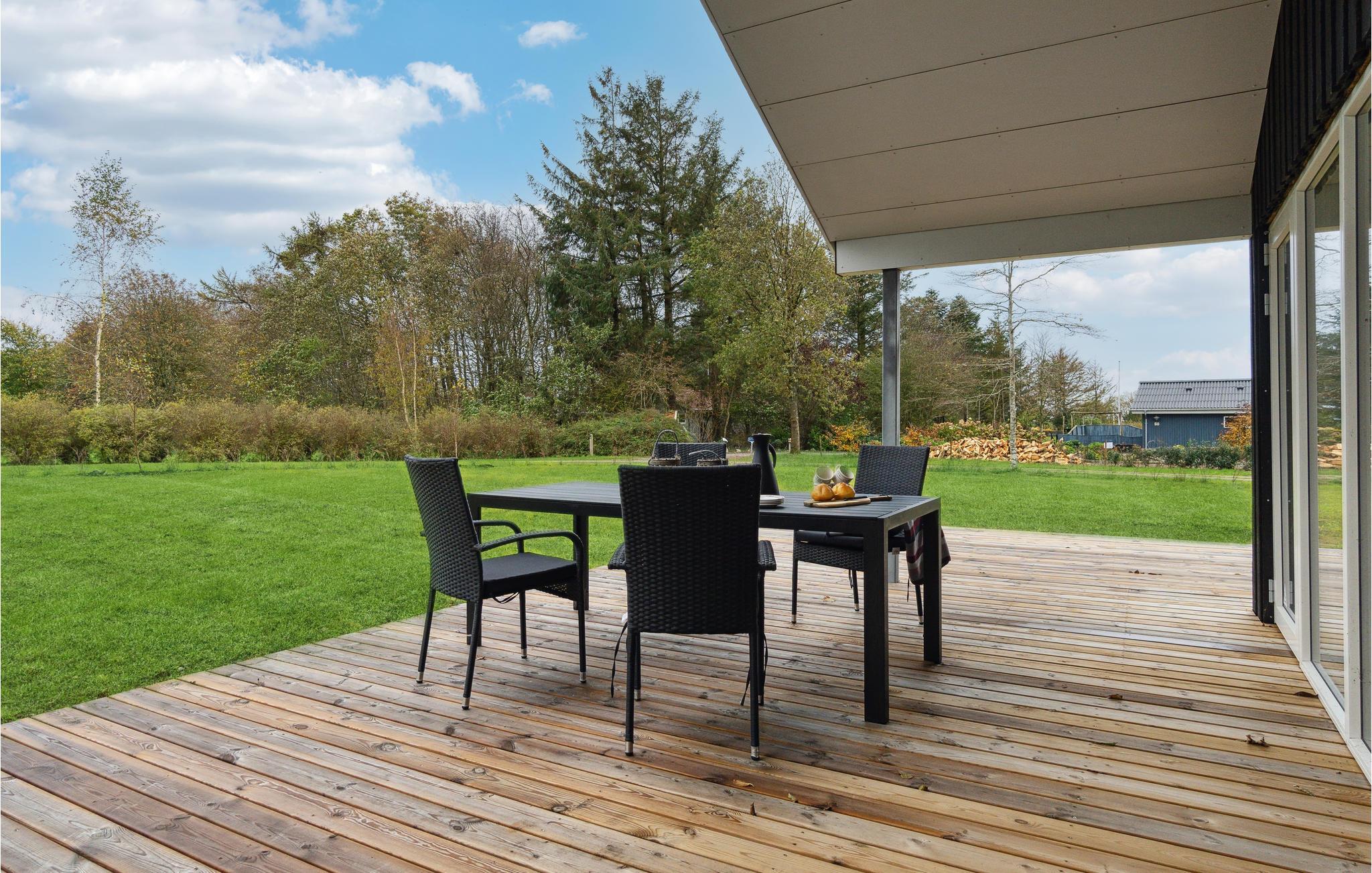 Modernes, familienfreundliches Ferienhaus am Limfjord mit großer Terrasse und Nähe zum Sandstrand.