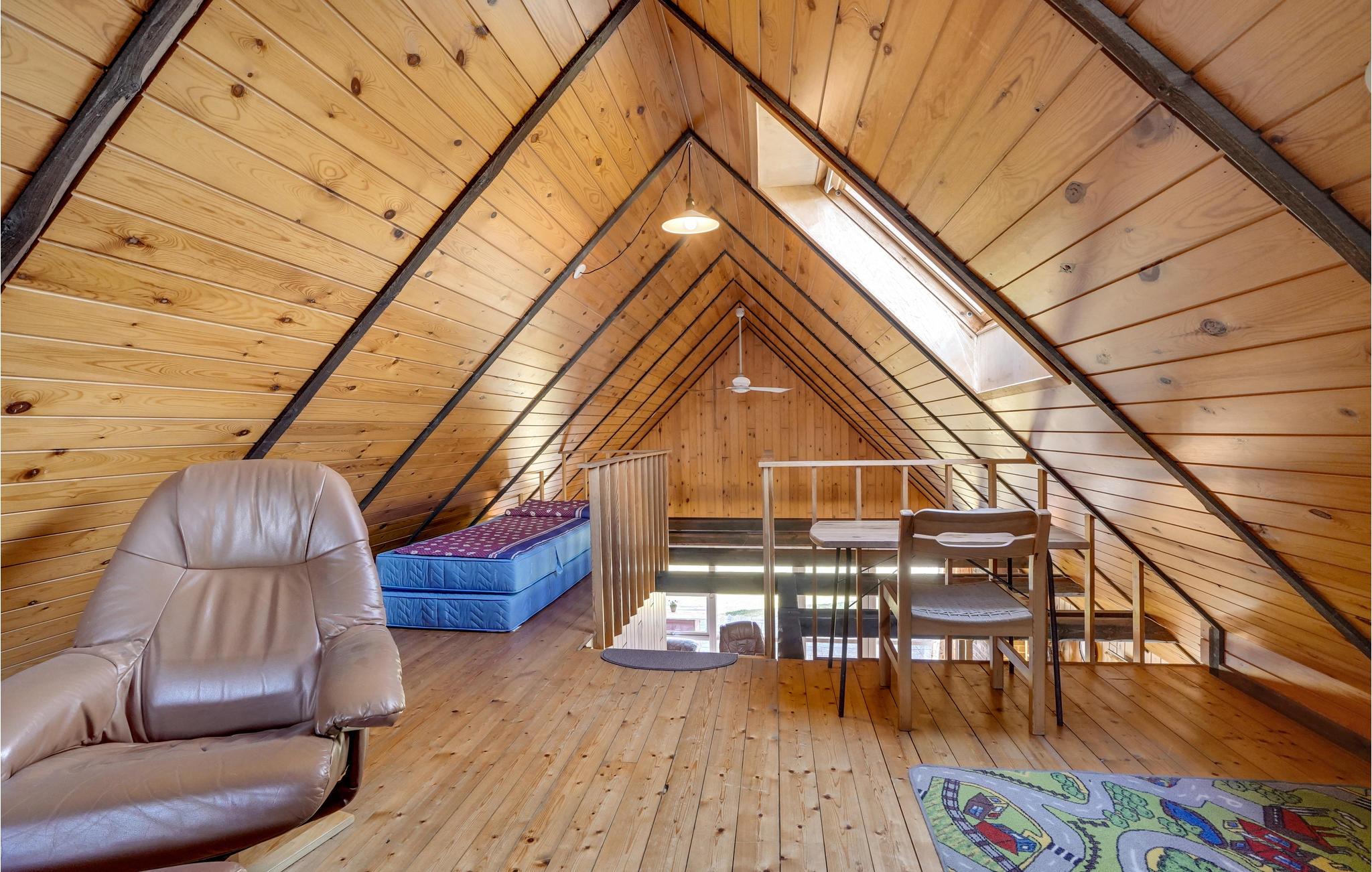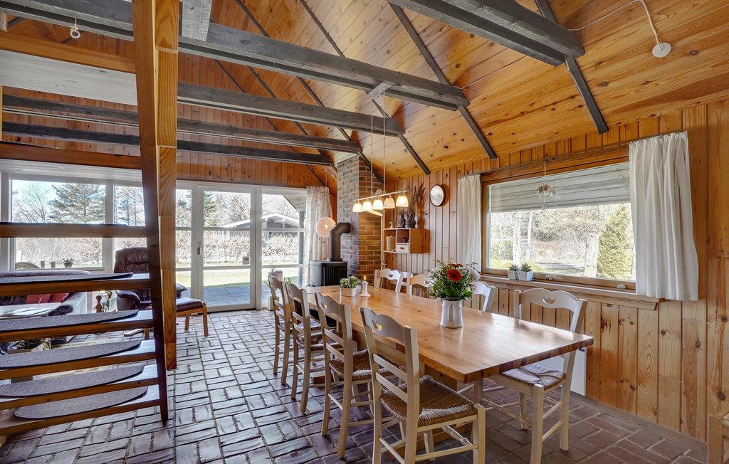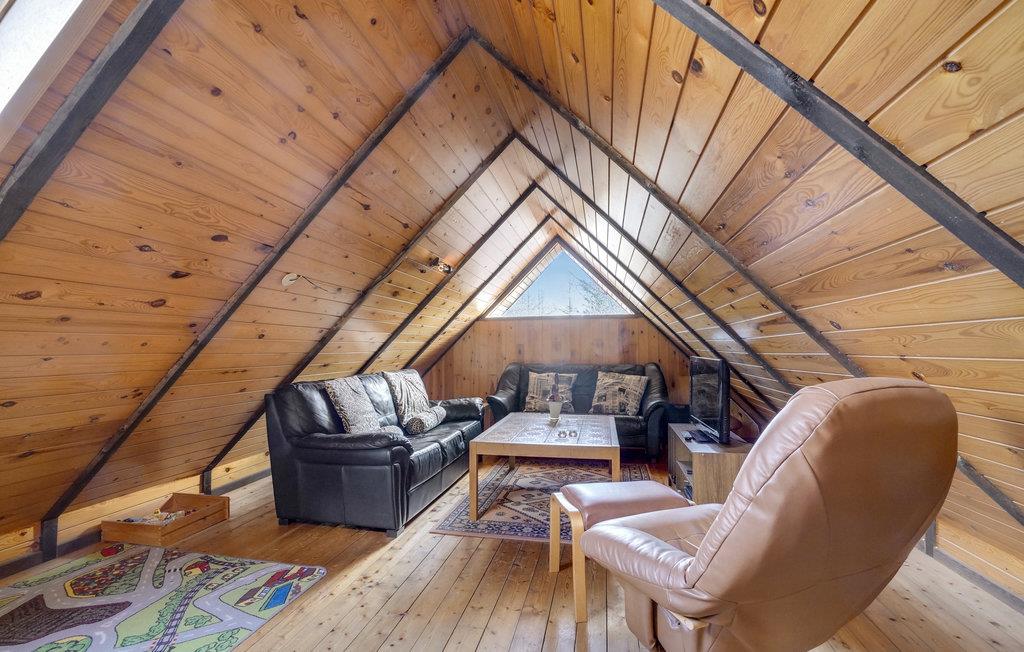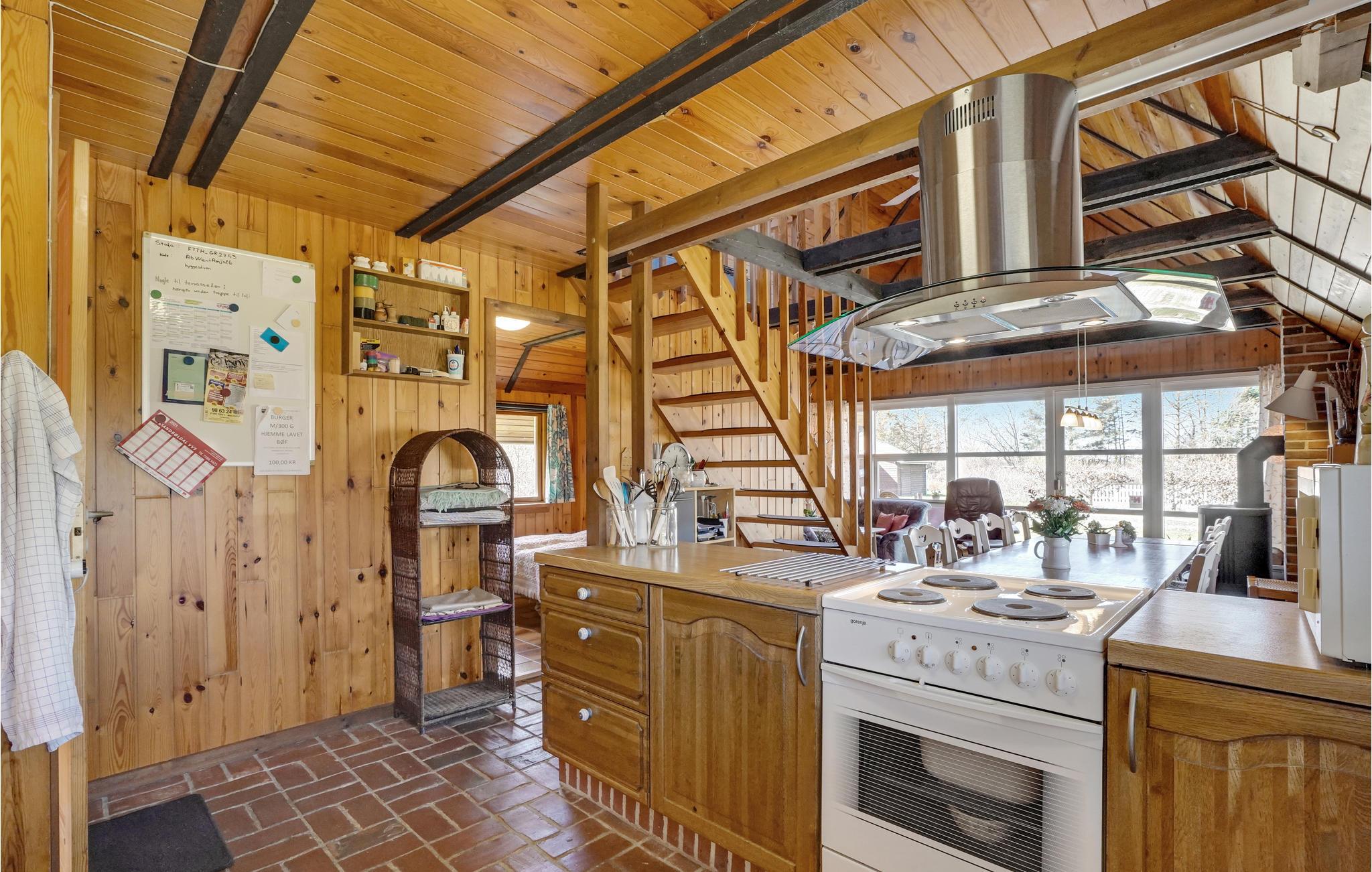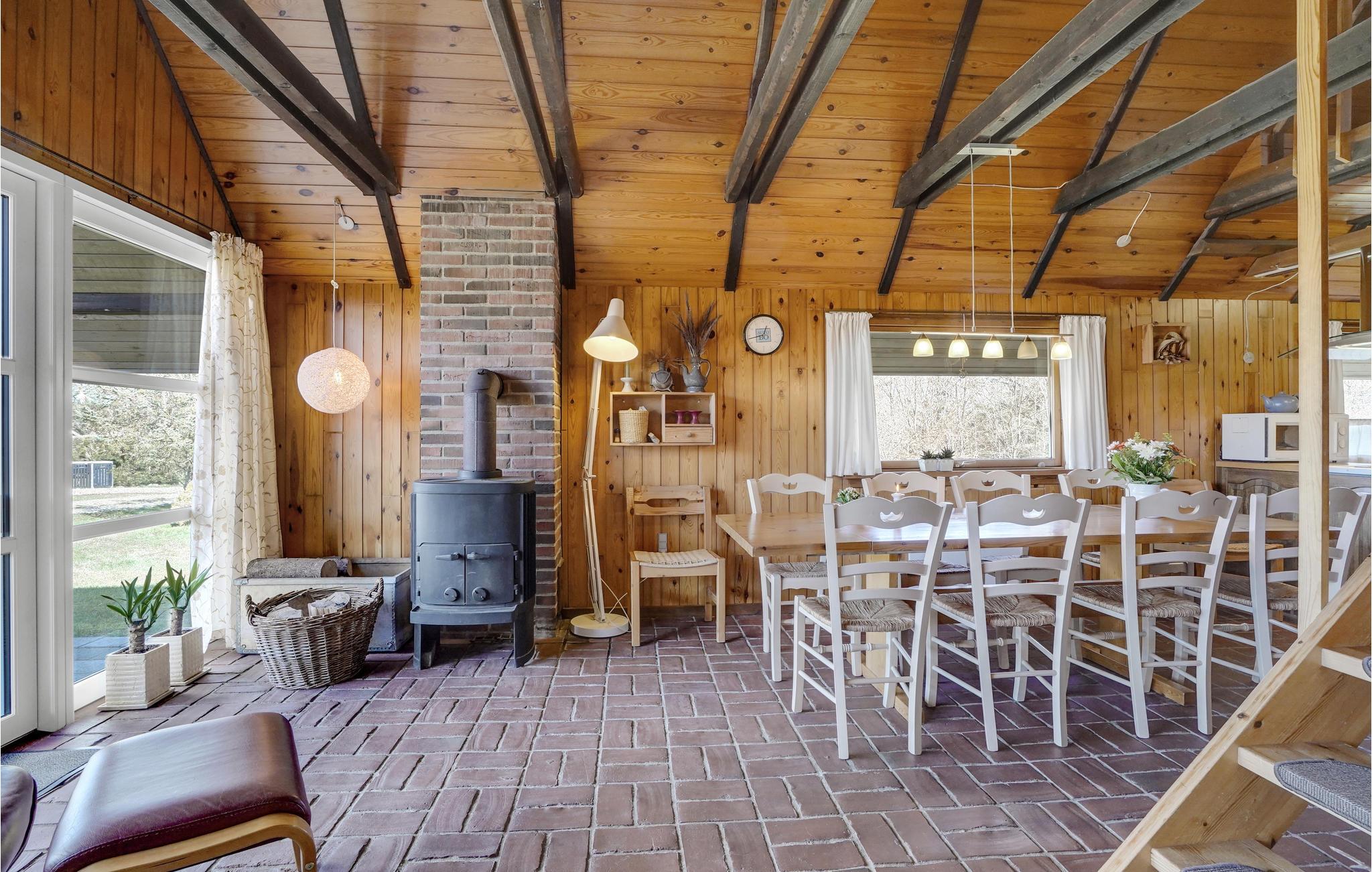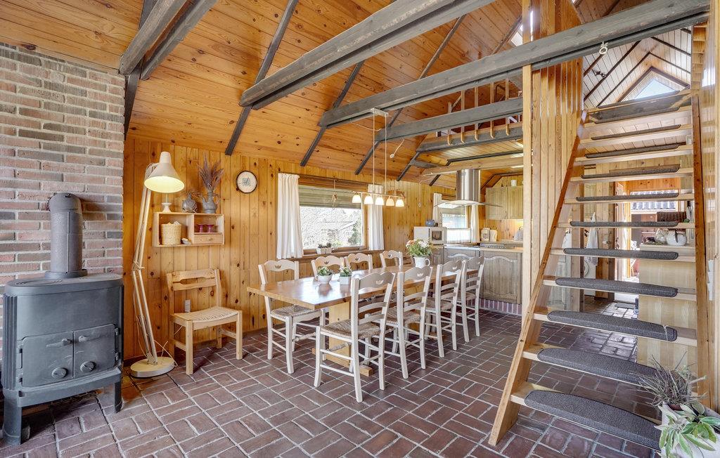Dieses Ferienhaus am Trend Strand ist ideal für Familien oder kleine Gruppen, die eine einfache und gemütliche Unterkunft suchen. Es bietet im Innenbereich eine praktische und geräumige Einrichtung und eine warme Holzverkleidung, die eine gemütliche Atmosphäre schafft. Große Fenster durchfluten den Wohnbereich mit Licht und bieten Ihnen eine schöne Aussicht auf die umliegende Natur. Ein zentraler Kaminofen sorgt an kühlen Tagen für Wärme. Die Küche ist mit allem ausgestattet, was Sie für die Zubereitung Ihrer Mahlzeiten benötigen, und die angrenzende Essecke lädt zum gemeinsamen Speisen ein. Im Obergeschoss finden Sie einen separaten Rückzugsort mit bequemen Sitzmöglichkeiten.