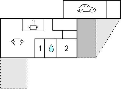Badezimmer (nr. 1) - WC. Warmes und kaltes Wasser. Dusche