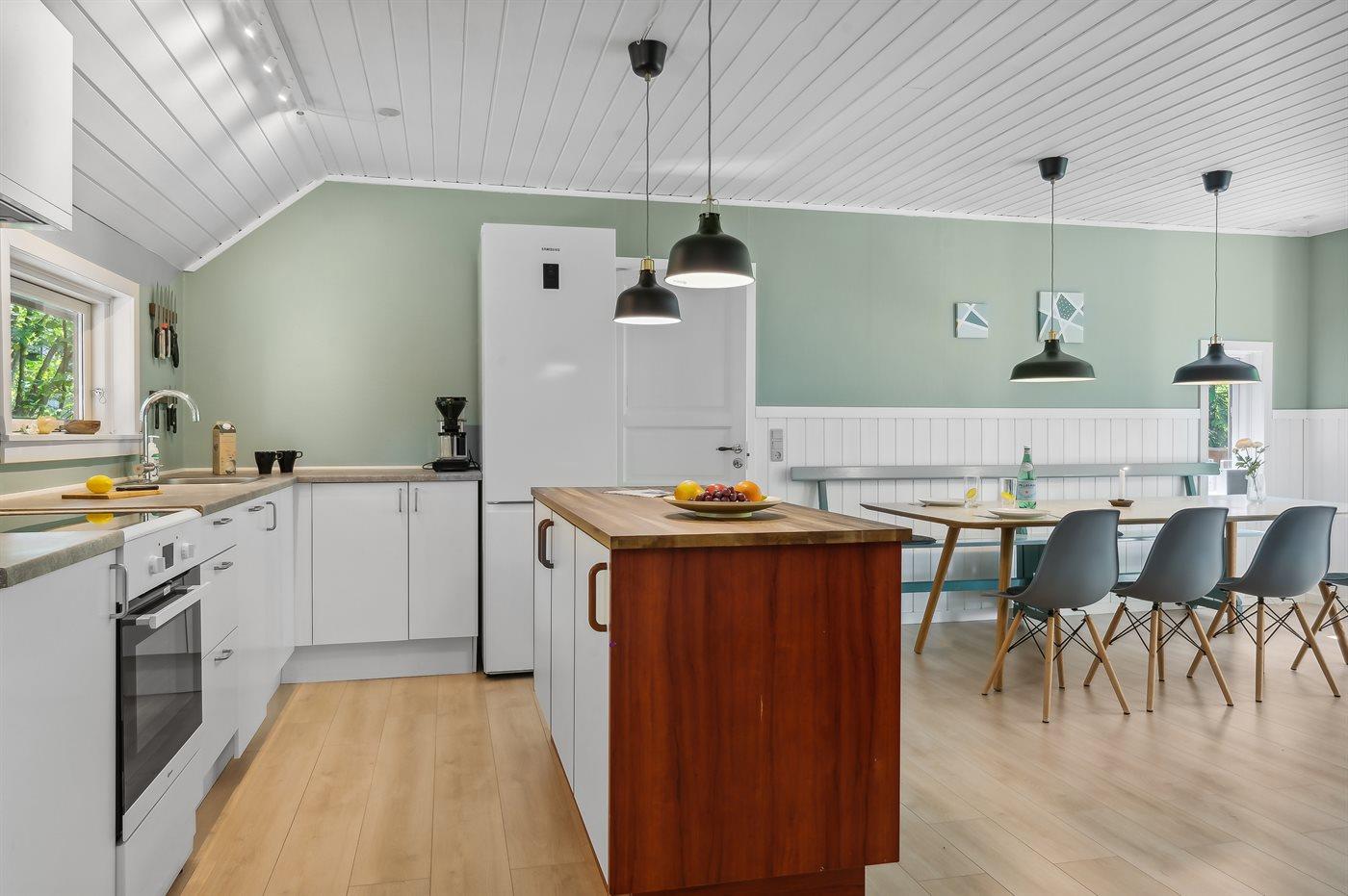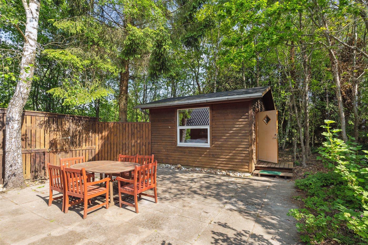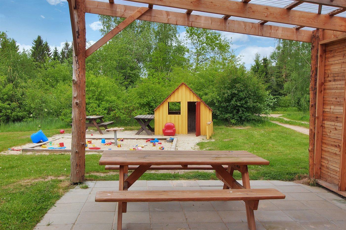 Das Sommerhaus liegt völlig ungestört auf dem 1300 m2 großen Grundstück und verfügt über einen schönen Terrassenbereich, sodass die Ruhe und die schöne Umgebung zu genießen sind. Das Sommerhaus ist gut eingerichtet und verfügt über eine große Wohnküche und drei gute Schlafzimmer sowie ein Gästehaus, das für ältere Kinder oder Großeltern geeignet ist. Hier bietet sich also eine wirklich gute Gelegenheit für zwei Familien, gemeinsam einen Urlaub zu verbringen. Den Urlaubsgästen dieses Hauses steht der örtliche Outdoor-Pool samt zugehörigem Kinderbecken kostenlos zur Verfügung. Der Pool liegt ca. 250 m weit vom Haus entfernt und ist von Mitte Mai bis zum letzten Augustwochenende geöffnet.