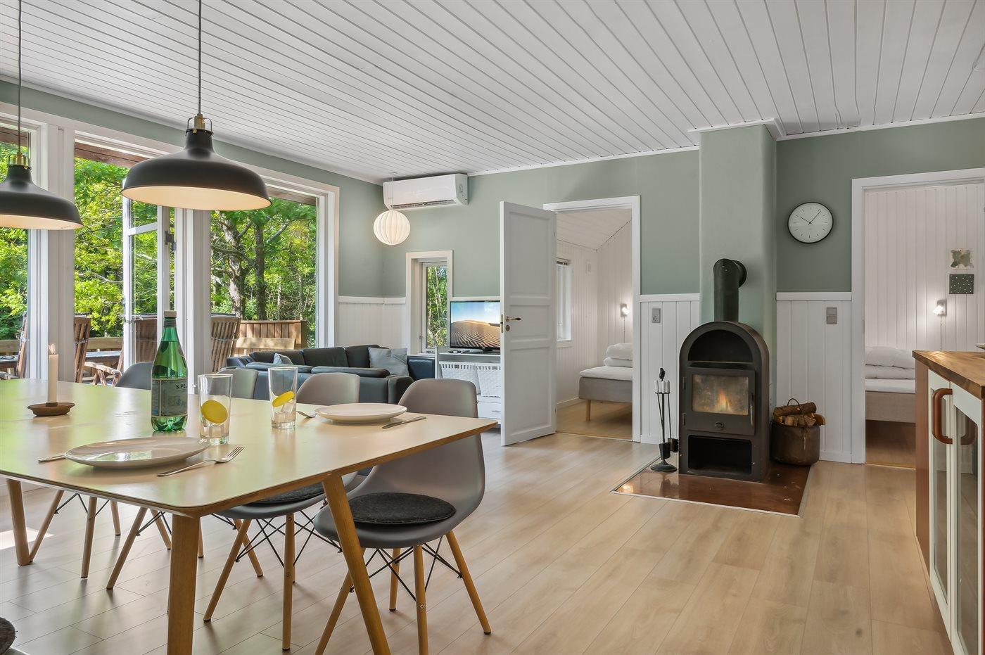 Das Ferienhaus eignet sich für 8 Personen sowie 1 Kleinkind bis zu 3 Jahren. Die Ferienunterkunft hat eine Wohnfläche von 85 m² und wurde 2001 gebaut. 2005 wurde die Ferienunterkunft renoviert. 2023 wurde die Ferienunterkunft teilweise renoviert. Haustiere dürfen nicht mitgebracht werden. Die Ferienunterkunft ist mit energiefreundlicher Luft-Luft- Wärmepumpe ausgestattet. Tiefkühlmöglichkeit mit 94 Liter Nutzinhalt. Es gibt außerdem einen Kaminofen.