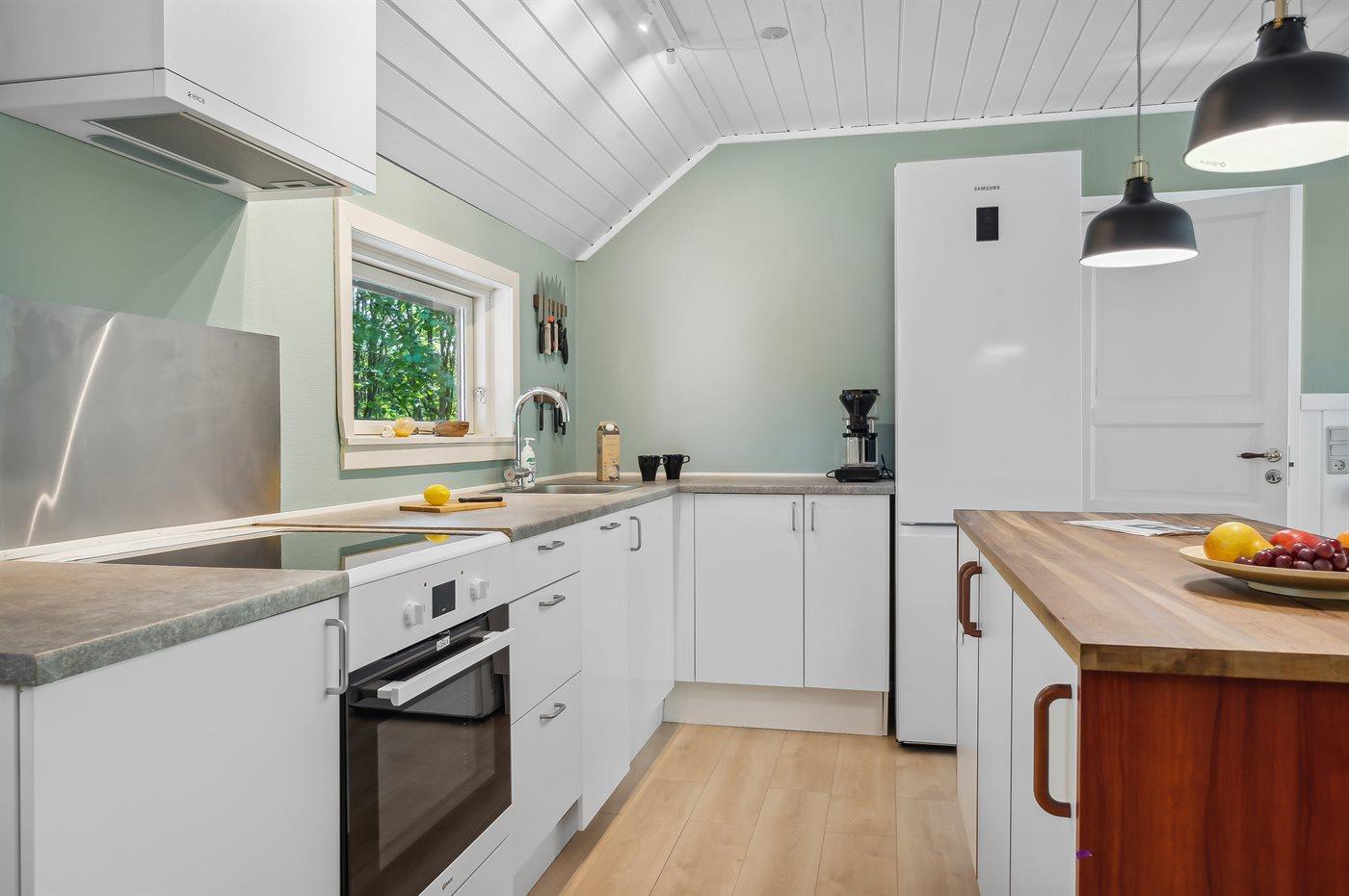 Die Küche ist mit Kühlschrank ausgestattet. Außerdem gibt es 4 Induktions-Kochzonen, Umluftofen, Mikrowelle sowie Geschirrspüler.