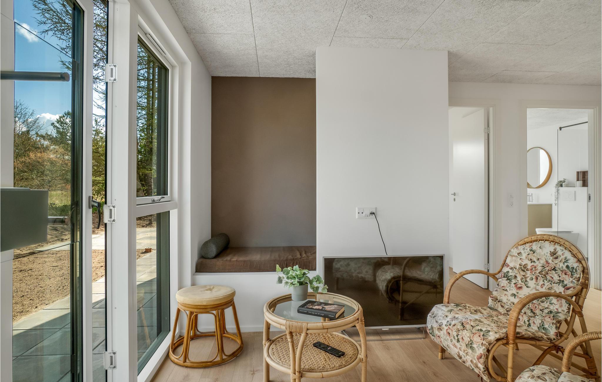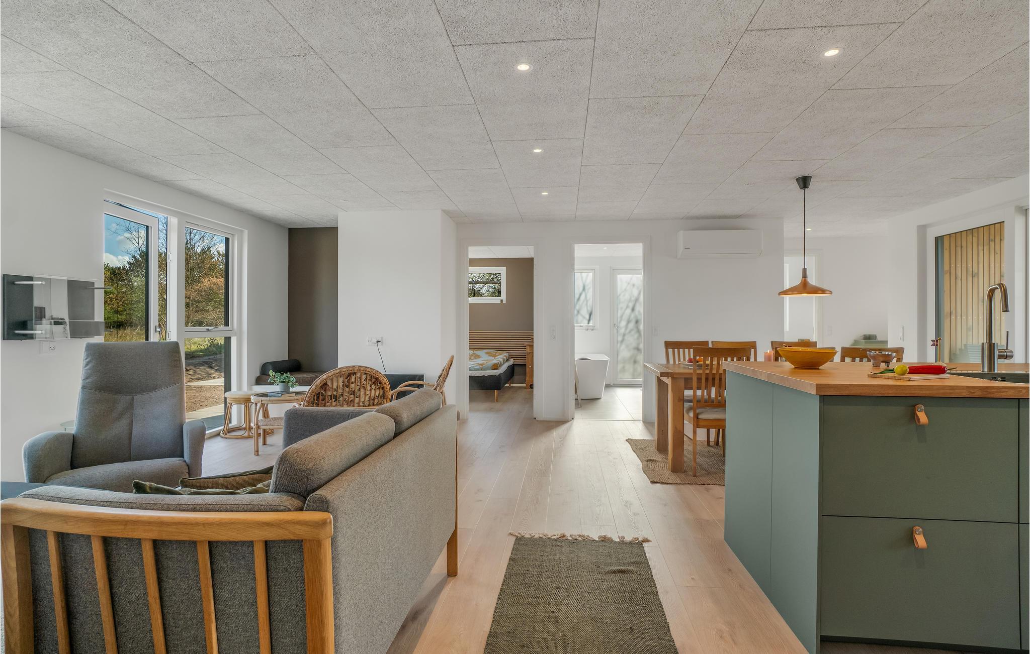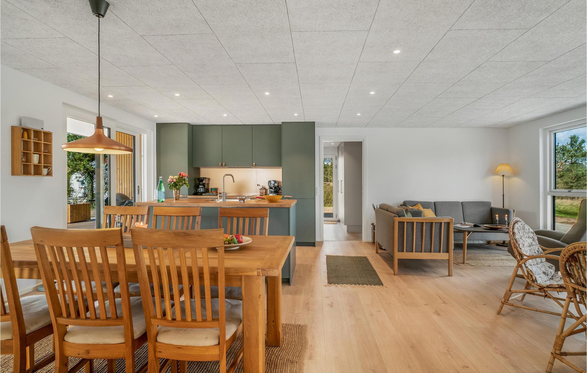 Willkommen in diesem modernen und komfortablen Haus, das Sie in idyllischer Lage nahe dem Wald empfängt und sich besonders gut für einen erholsamen Urlaub mit Aktivitäten in der Natur eignet. Die hellen Räume mit ihrer wohnlichen Einrichtung machen das Haus zur idealen Basis, um hier mit der Familie zu entspannen. Beim Entspannen auf dem Sofa, beim gemeinsamen Kochen und bei den Mahlzeiten am langen Esstisch genießen Sie einen herrlichen Blick ins Freie.
