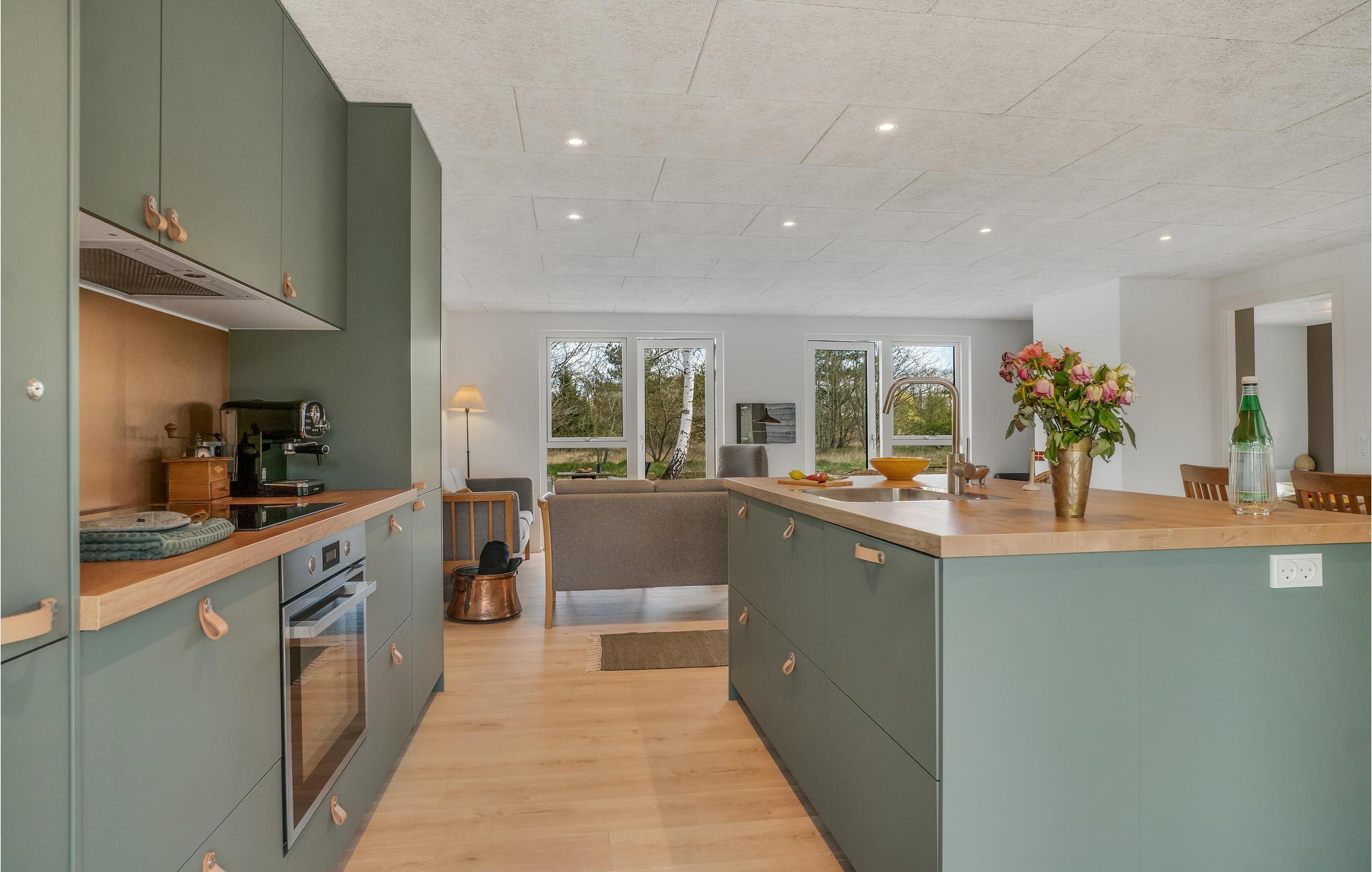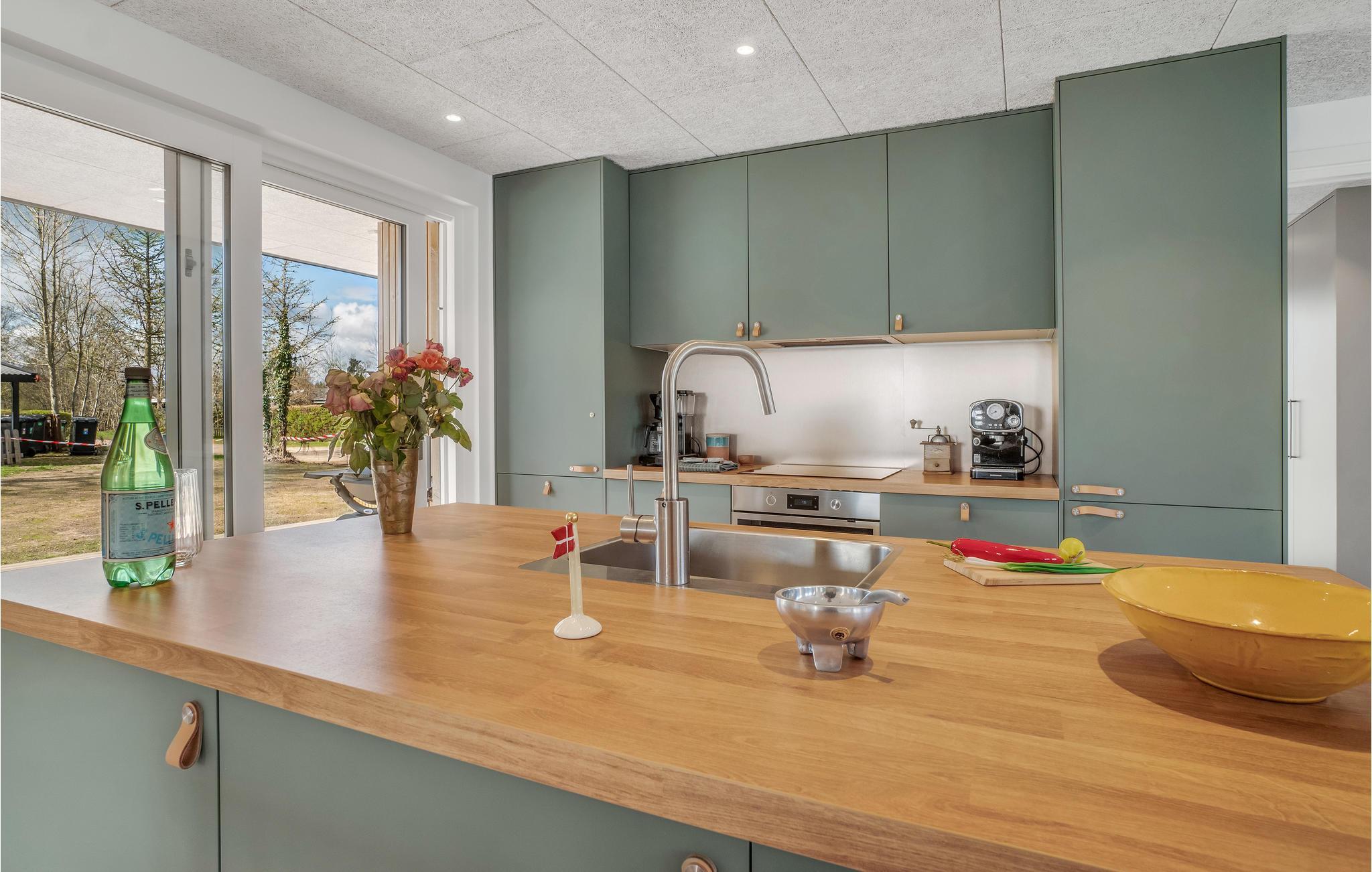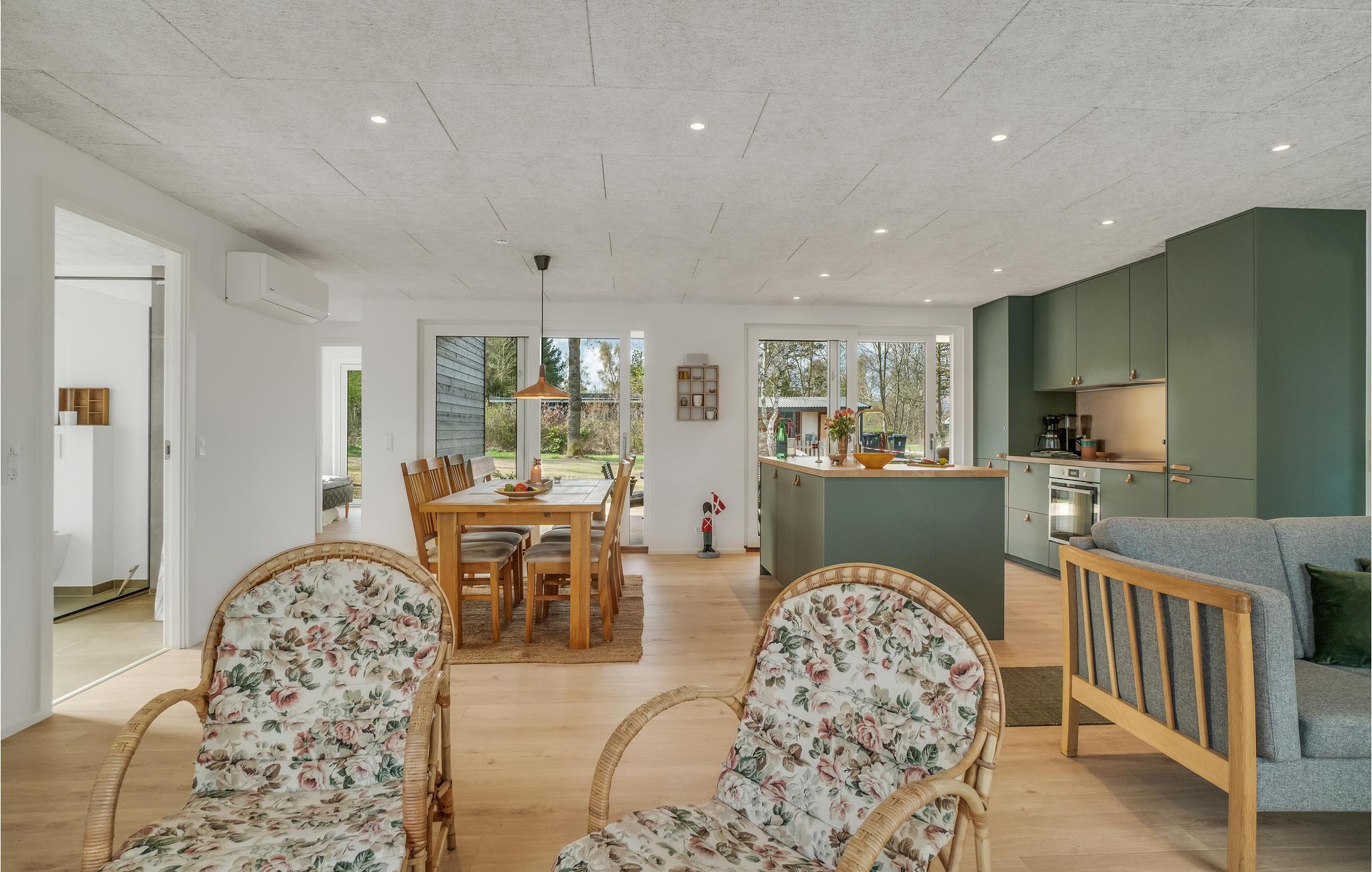 Willkommen in diesem modernen und komfortablen Haus, das Sie in idyllischer Lage nahe dem Wald empfängt und sich besonders gut für einen erholsamen Urlaub mit Aktivitäten in der Natur eignet. Die hellen Räume mit ihrer wohnlichen Einrichtung machen das Haus zur idealen Basis, um hier mit der Familie zu entspannen. Beim Entspannen auf dem Sofa, beim gemeinsamen Kochen und bei den Mahlzeiten am langen Esstisch genießen Sie einen herrlichen Blick ins Freie.