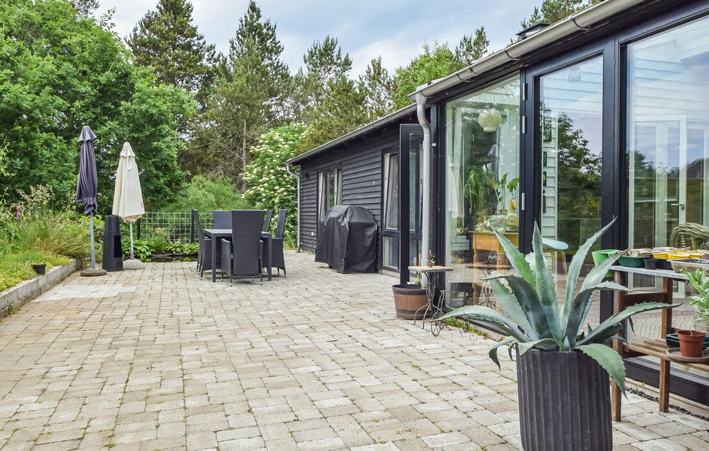 Modernes Ferienhaus in Fårvang mit Wintergarten, großer Terrasse und nachhaltiger Ausstattung für entspannte Urlaubstage.