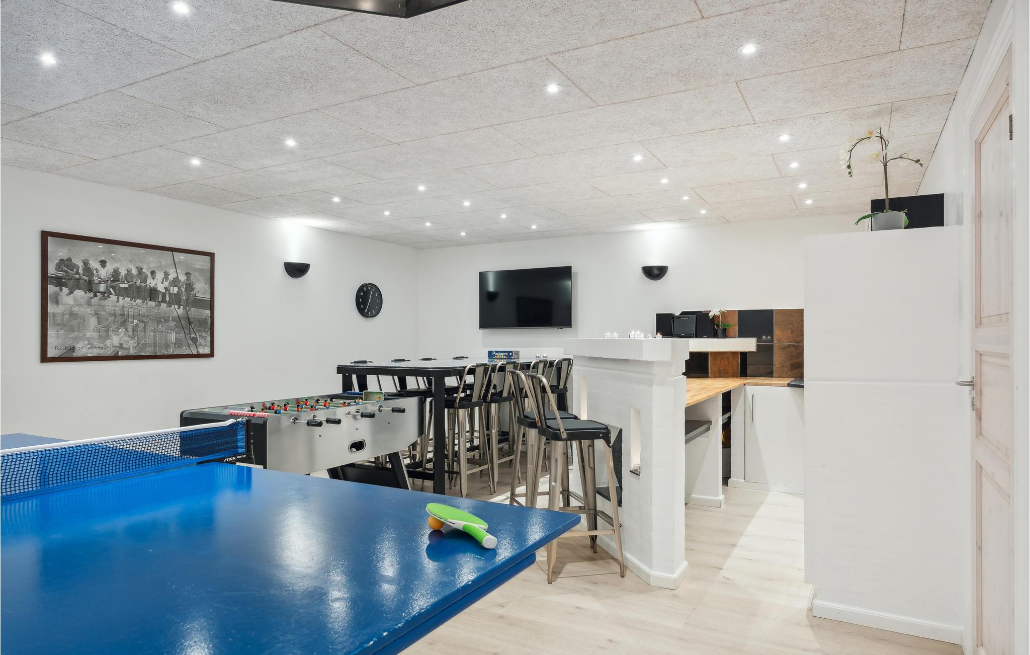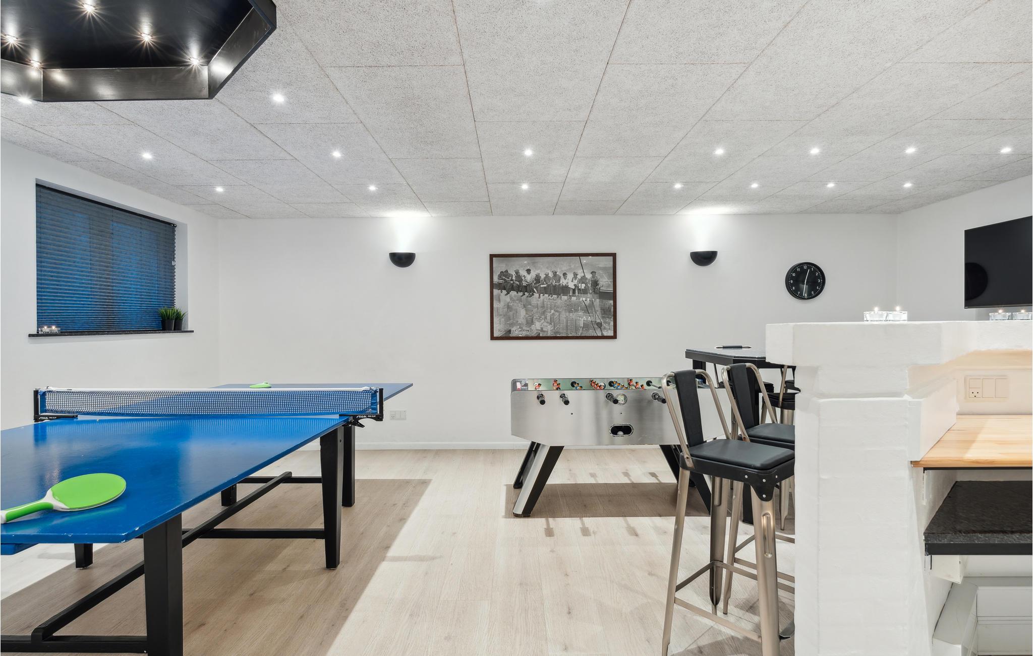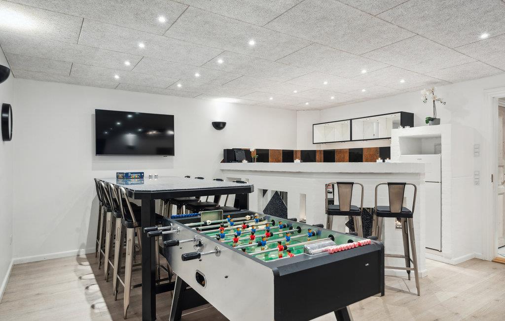Versammeln Sie Ihre Familie um sich, verbringen mit befreundeten Familien, mehreren Generationen oder einer Gruppe erfahrener Angelfreunde einen unvergesslichen Urlaub in diesem herrlichen Haus. Hier werden Sie viel Platz, für Entspannung, Spaß und die Familie haben. Der offene Wohnraum ist der zentrale Treffpunkt für Sie uns Ihre Lieben. Bereiten Sie am Morgen ein leckeres Frühstück zu und setzen sich an die lange Tafel oder genießen gemeinsame Filmabende auf den zahlriechen Sofas, sodass Kinofeeling aufkommen kann. Während die einen das Spielzimmer mit Tischtennis, Tischkicker, Stehtisch und Bar erkunden, können die Ruhesuchende es sich in der Whirlpool-Badewanne oder in der Sauna gemütlich machen.