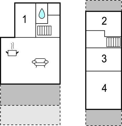 Badezimmer (nr. 1) - WC. Warmes und kaltes Wasser. Dusche