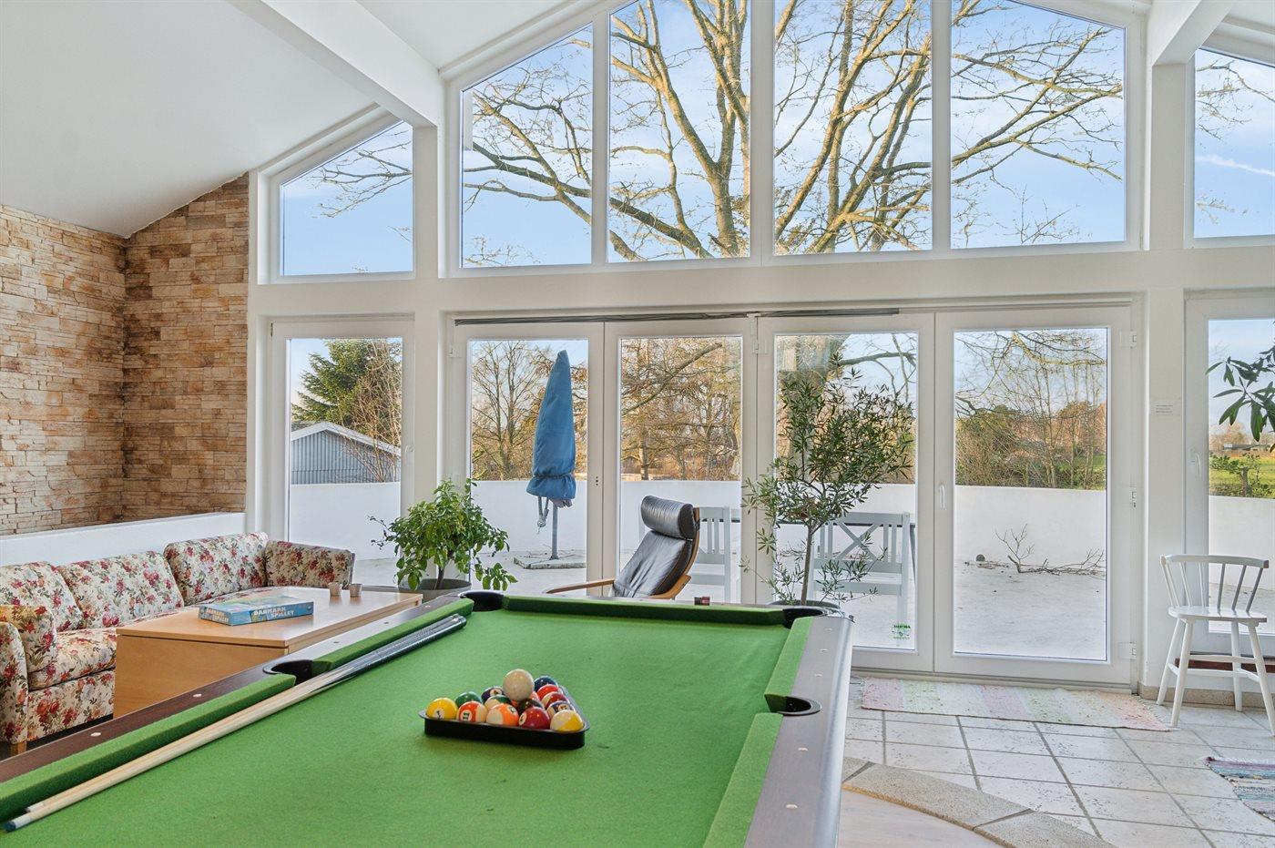Das schöne Ferienhaus mit deutlicher südländischer Inspiration befindet sich auf Tuse Næs, nur 575 Meter vom Fjord entfernt, wo es Bademöglichkeiten und einen Badesteg gibt. Das Haus liegt in einem ruhigen Ferienhausgebiet in malerischer Umgebung mit reichlich Tierleben. Mit seinen 156 Quadratmetern bietet das Haus viel Luft und Geräumigkeit, und der große Gemeinschaftsraum mit Küche, Essbereich, Sofagruppe und Pooltisch ist der natürliche Treffpunkt für Gemütlichkeit und Geselligkeit. Von hier aus gelangt man auf die große Terrasse, von der aus man Blick auf den Fjord hat.