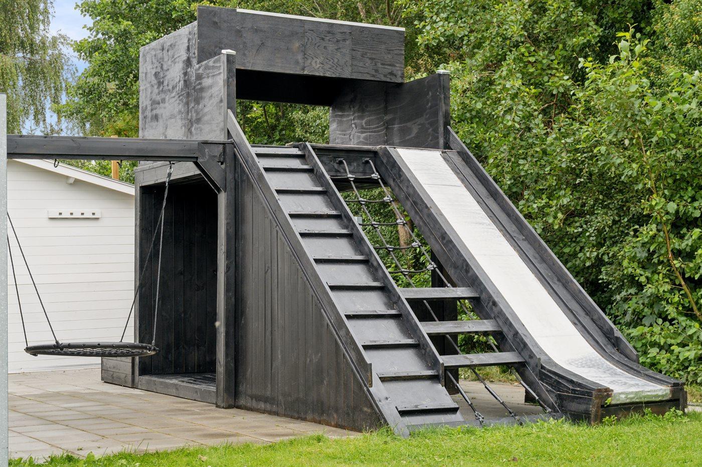 Die Ferienunterkunft liegt auf einem 22436 m² großen Gartengrundstück. Die Entfernung zum Fjord beträgt 50 m. Die nächste Einkaufsmöglichkeit liegt 2600 m entfernt. Es steht ein 300 m² Terrassenareal zur Verfügung. Außerdem gibt es 19 m² überdachte Terrasse. Geräteraum. Sandkasten. Spielturm. Rutsche. Es steht ein Grill zur Verfügung. Es steht ein Carport zur Verfügung. Es ist ein Ladestecker für Elektroautos installiert. Ladestecker Typ 2. Parkplatz auf dem Grundstück.