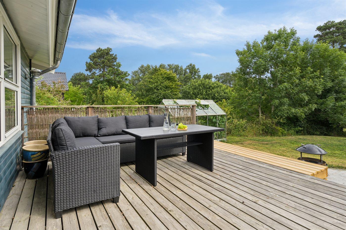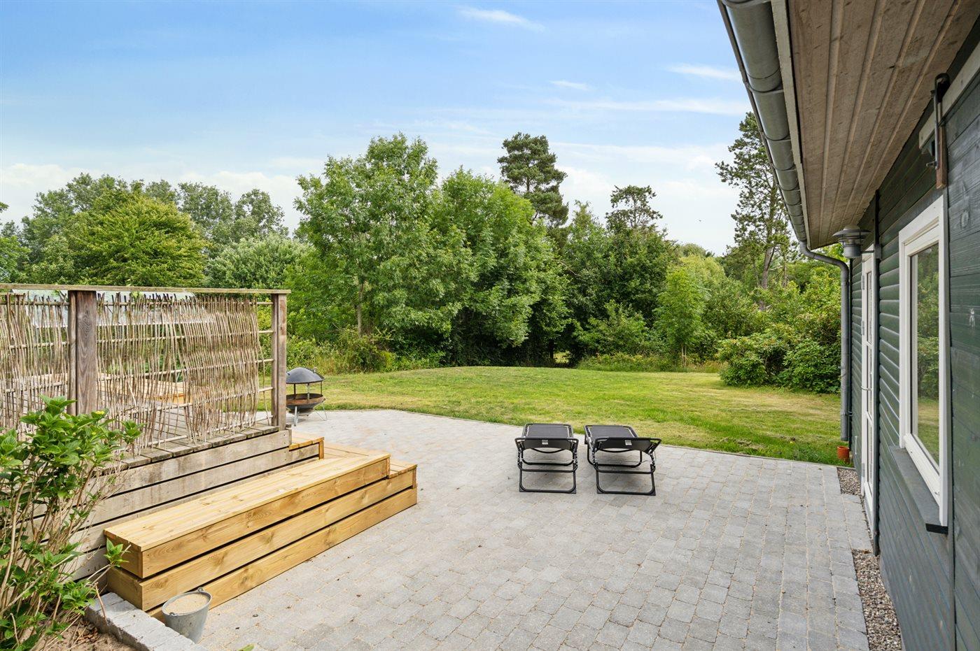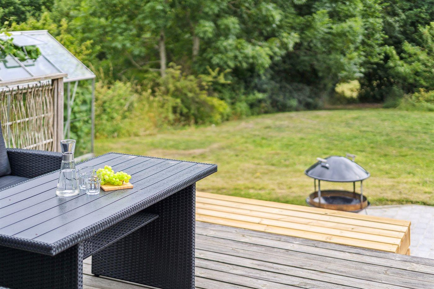Charmantes Ferienhaus nahe Fjord mit großer Terrasse und Außenküche in naturschöner Umgebung auf Tuse Næs.