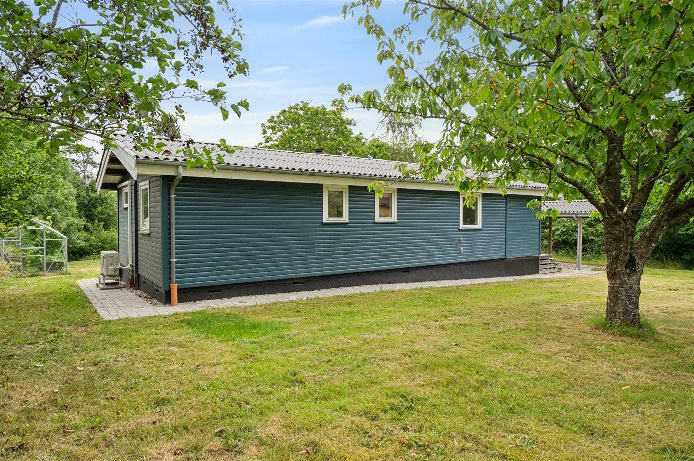 Die Ferienunterkunft liegt auf einem 1204 m² großen Gartengrundstück. Die Entfernung zum Fjord beträgt 225 m. Die nächste Einkaufsmöglichkeit liegt 3900 m entfernt. In einem Abstand von 18900 m gibt es einen Golfplatz. Es steht ein 50 m² Terrassenareal zur Verfügung.Es beteht die Möglichkeit das Essen in der Außenküche zuzubereiten. Es steht ein Grill zur Verfügung. Es steht ein Carport zur Verfügung. Parkplatz auf dem Grundstück.