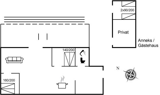 Die Schlafplätze verteilen sich auf 3 Schlafräume. 4 Schlafplätze in Doppelbetten. 2 Schlafplätze in Einzelbetten. 2 von diesen Schlafplätzen befinden sich im Gästehaus.