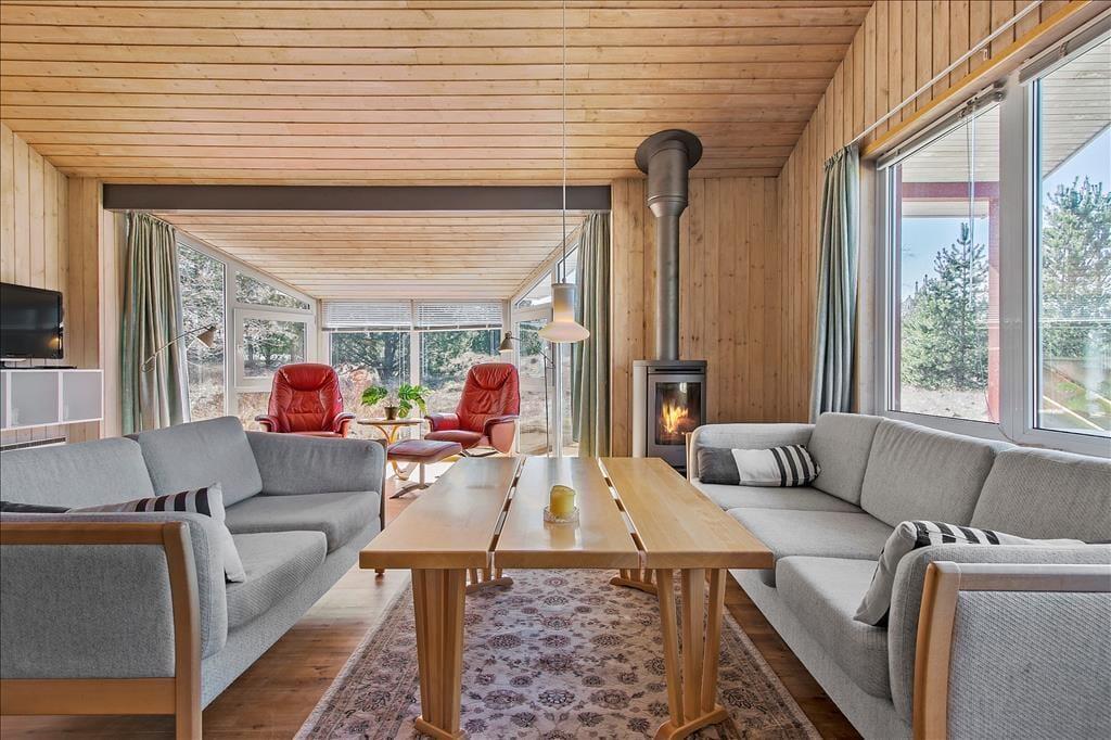 Die Raumaufteilung des Ferienhauses ist perfekt für eine Familie mit Kindern geeignet, und es gibt sogar Platz für die Großeltern, wenn gewünscht. Zwei Badezimmer mit Dusche machen die Morgenroutine einfach und ohne Warteschlangen. Für einen ruhigen Abend können Sie die Sauna nutzen und im Whirlpool entspannen. Sie können sich auch in einem der Sofas im Wohnzimmer mit einem spannenden Krimi in der Hand und einem Feuer im Kamin zurücklehnen. Tagsüber strömt das Sonnenlicht durch die großen Fenster und bietet einen wunderschönen Blick auf das Naturgrundstück. Und wenn Sie Lust haben, ins Freie zu gehen, können Sie einfach die Terrassentür öffnen und direkt in die Natur treten.