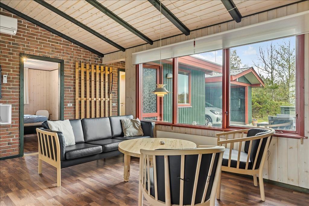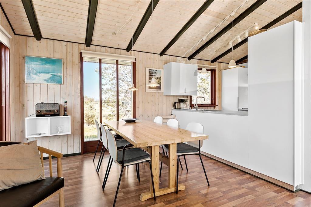 Im Inneren erwartet dich eine helle und freundliche Einrichtung, bei der sowohl Farben als auch Möbel mit Sorgfalt ausgewählt wurden. Das geräumige Wohnzimmer mit Kamin lädt zu gemütlichen Stunden ein – sei es mit einem guten Buch, einem Film auf dem Flachbildschirm oder einfach, um Zeit miteinander zu verbringen. Die offene Küche grenzt direkt an das Wohnzimmer an und macht es einfach, Mahlzeiten zuzubereiten, während der Rest der Familie sich am Esstisch versammelt. Das Haus bietet ausreichend Platz, damit sowohl Kinder als auch Erwachsene einen ruhigen und angenehmen Urlaub genießen können – mit Schlafzimmern, die zu langen Morgen einladen, und einem praktischen Badezimmer, das den Alltag während des Aufenthalts erleichtert.