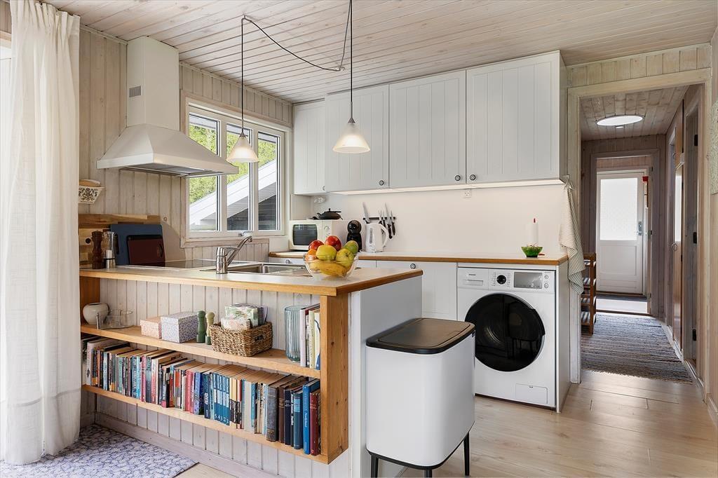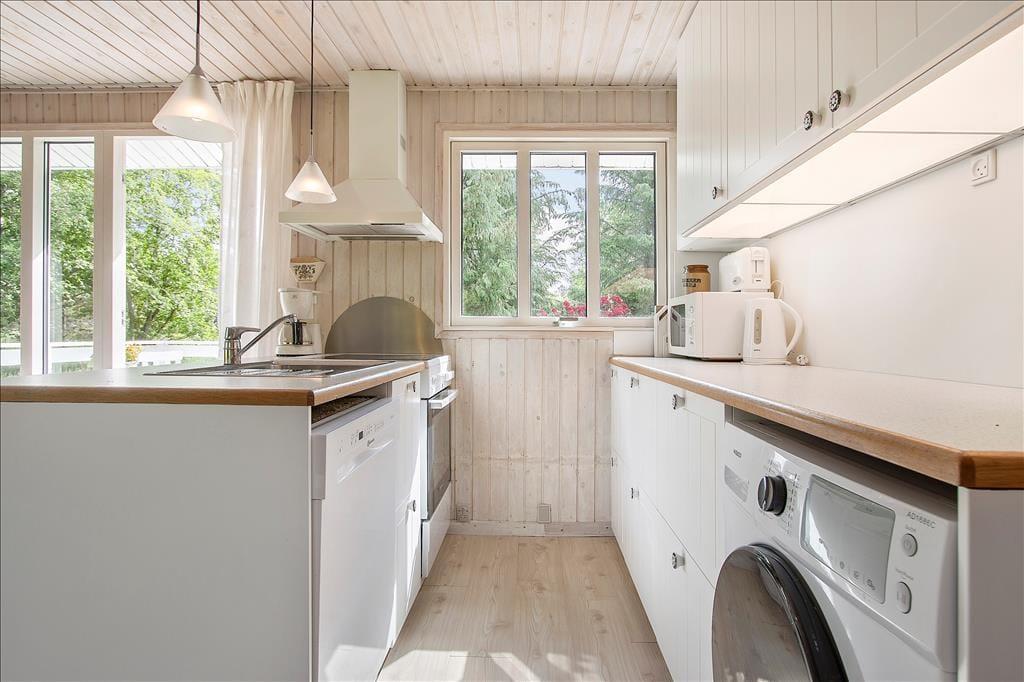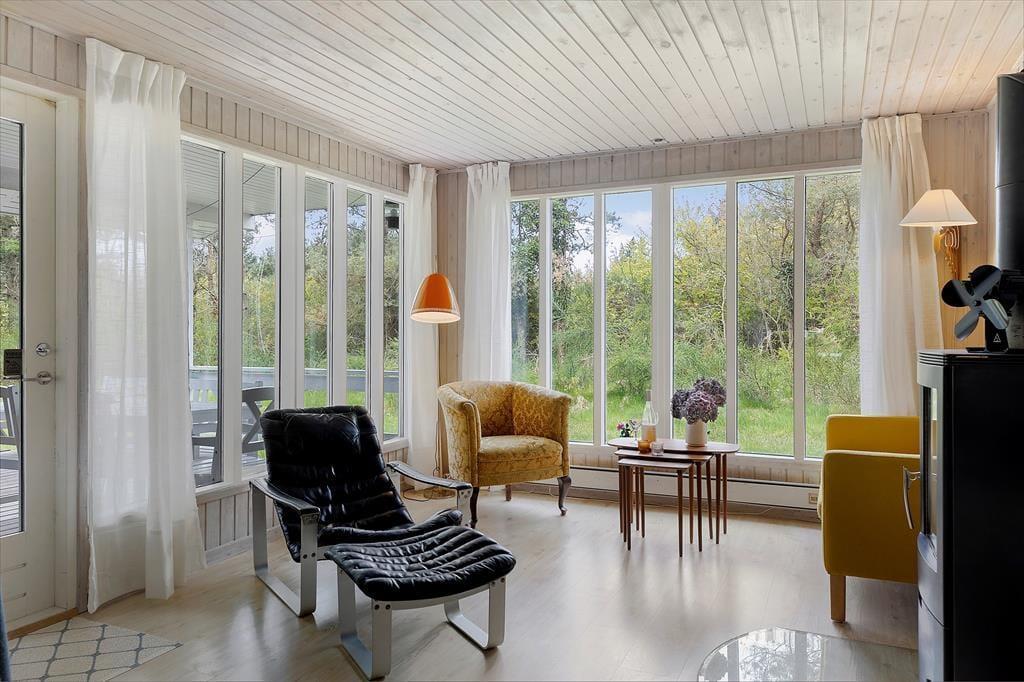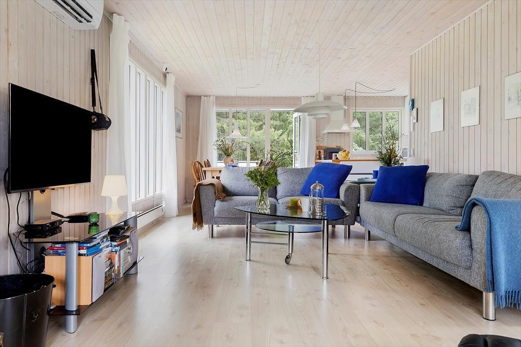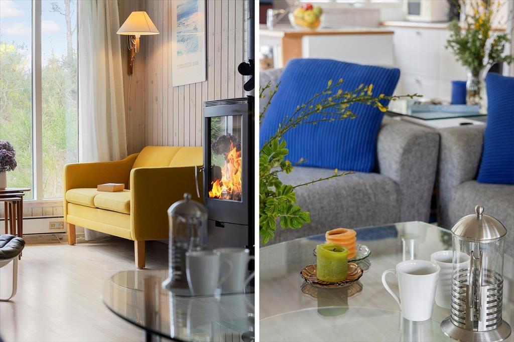Beim Betreten des Ferienhauses empfängt dich eine helle und freundliche Atmosphäre, die es leicht macht, sich sofort wohlzufühlen. Große Fensterfronten lassen viel Tageslicht herein, während die Einrichtung mit warmen Farbtönen und einem schlichten Stil zum Entspannen einlädt. Im Wohnzimmer kannst du dich auf dem Sofa vor dem knisternden Kaminofen niederlassen, die wohlige Wärme spüren und die Ruhe genießen. Küche und Essbereich sind offen mit dem Wohnzimmer verbunden, sodass Gespräche und Geselligkeit auch beim Kochen, Kartenspielen oder einem Glas Wein fortgesetzt werden können. Nach einem langen Tag an der frischen Meeresluft kannst du den Abend mit einem Saunagang ausklingen lassen – eine wunderbare Art, den Tag zu beenden, zu jeder Jahreszeit.