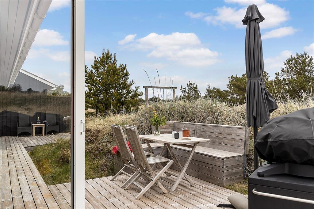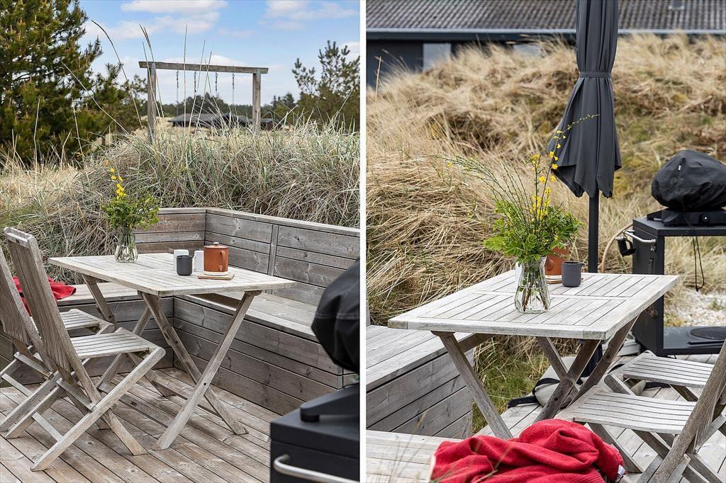 Eingebettet in die Natur und umgeben von hohen Bäumen kannst du auf der Terrasse die Ruhe genießen. Die Außenbereiche des Ferienhauses sind ideal für lange, entspannte Tage in der Sonne – ob du ein Buch liest, mit der Familie grillst oder einfach dem Rascheln der Blätter im Wind lauschst. Der Garten bietet den Kindern Platz zum Toben, während die Erwachsenen schattige Plätze zum Entspannen finden können. Mit der Natur direkt vor der Haustür und einer einzigartigen Urlaubsatmosphäre fällt es leicht, die Zeit zu vergessen.