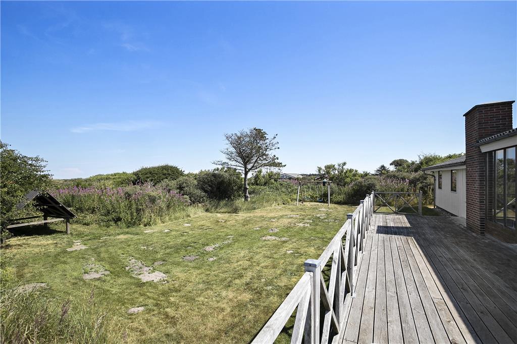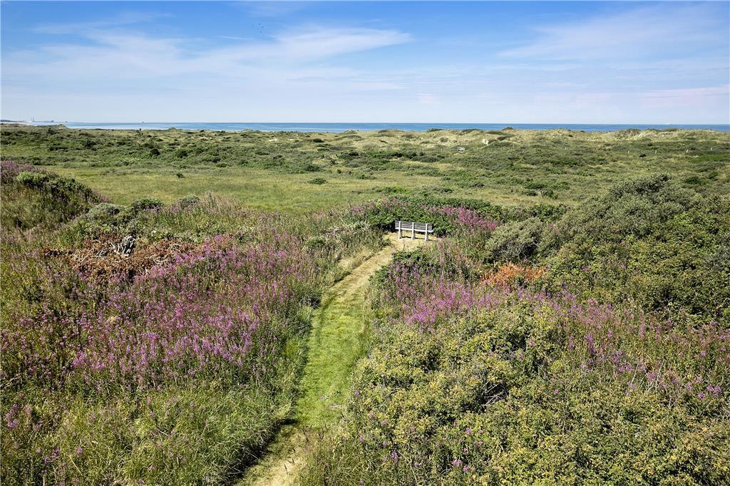 Das Ferienhaus liegt als letztes im Weg auf einem über 3.000 m² Naturgrundstück, auf dem Sie ungestört vor Verkehrslärm sind und sehr ruhig wohnen. Eine Terrasse mit hochwertigen Gartenmöbeln umschließt fast das ganze Haus und ein Teil der Terrasse ist erhöht, von der der atemberaubende Blick über die Dünen und Nordsee genossen wird. Der Garten bietet eine hervorragende Bepflanzung mit Bäumen und Büschen, damit bei Wind ein gut geschützter Platz gefunden werden kann.