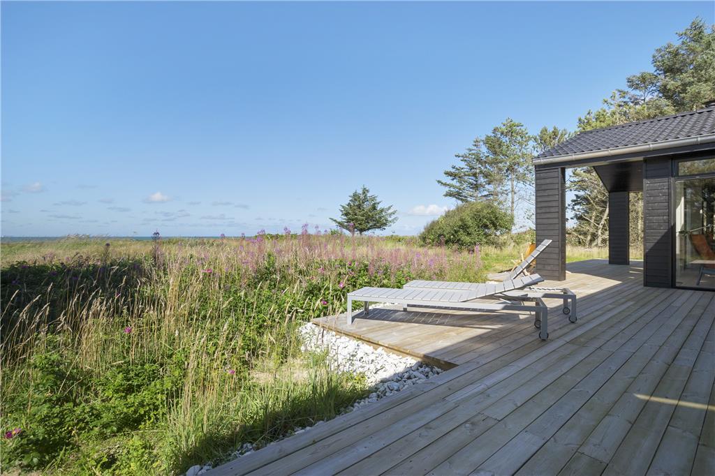 Das Ferienhaus bietet eine große Terrasse, die zur Entspannung unter freiem Himmel einlädt. Genieße deinen Morgenkaffee mit Meerblick, lass die Kinder auf dem Naturgrundstück spielen oder versammle die ganze Familie zu einem gemütlichen Grillabend, bei dem der Sonnenuntergang den Himmel in warme Farben taucht. Das umliegende Naturgrundstück vermittelt ein Gefühl von Privatsphäre und Freiheit, und mit der kurzen Entfernung zum Strand kannst du schnell ein erfrischendes Bad nehmen oder einen Spaziergang entlang der Küste unternehmen.