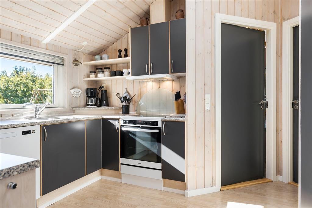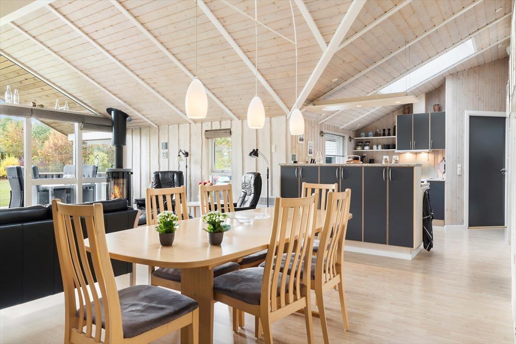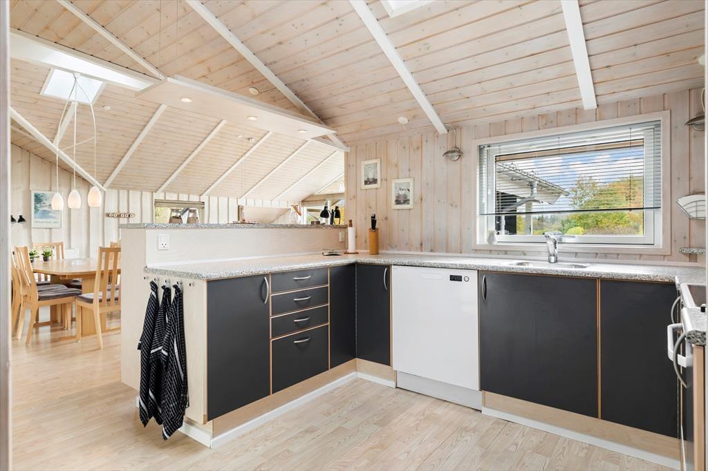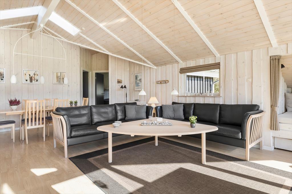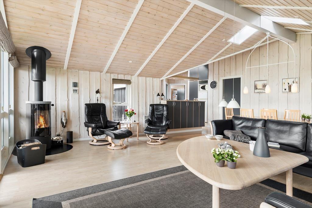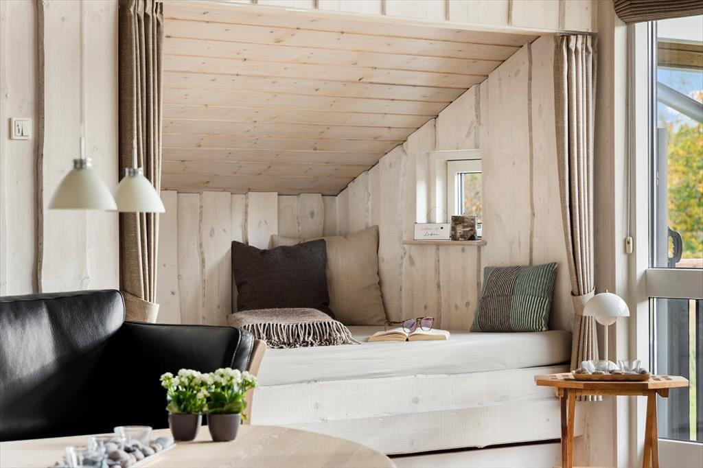 Das Ferienhaus empfängt Sie mit einer hellen und geräumigen Einrichtung, die sofort ein Gefühl von Wohlbefinden vermittelt. Das Wohnzimmer ist offen und gemütlich, große Fenster bringen die Natur ins Haus. Ein besonderes Highlight ist die Alkove im Wohnzimmer – ein ruhiger Ort, um in ein gutes Buch einzutauchen oder einfach den Moment der Ruhe zu genießen. Die Küche, die offen mit dem Wohnzimmer verbunden ist, macht gemeinsame Mahlzeiten einfach, und die bequemen Schlafzimmer laden zu langen, entspannten Morgenstunden ein. Das Haus strahlt Harmonie aus und bietet Platz für gemeinsames Beisammensein sowie für private Momente.