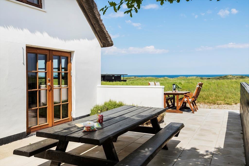 Willkommen in diesem einzigartigen Ferienhaus auf Mellemklitvej 34A, wo Gemütlichkeit, Charme und ein spektakulärer Blick auf die Nordsee perfekt miteinander harmonieren. Genieße deinen Urlaub in einem klassischen Reetdachhaus mit einem herrlichen Innenhof und einer warmen Einrichtung, die zum Entspannen und Verweilen einlädt.