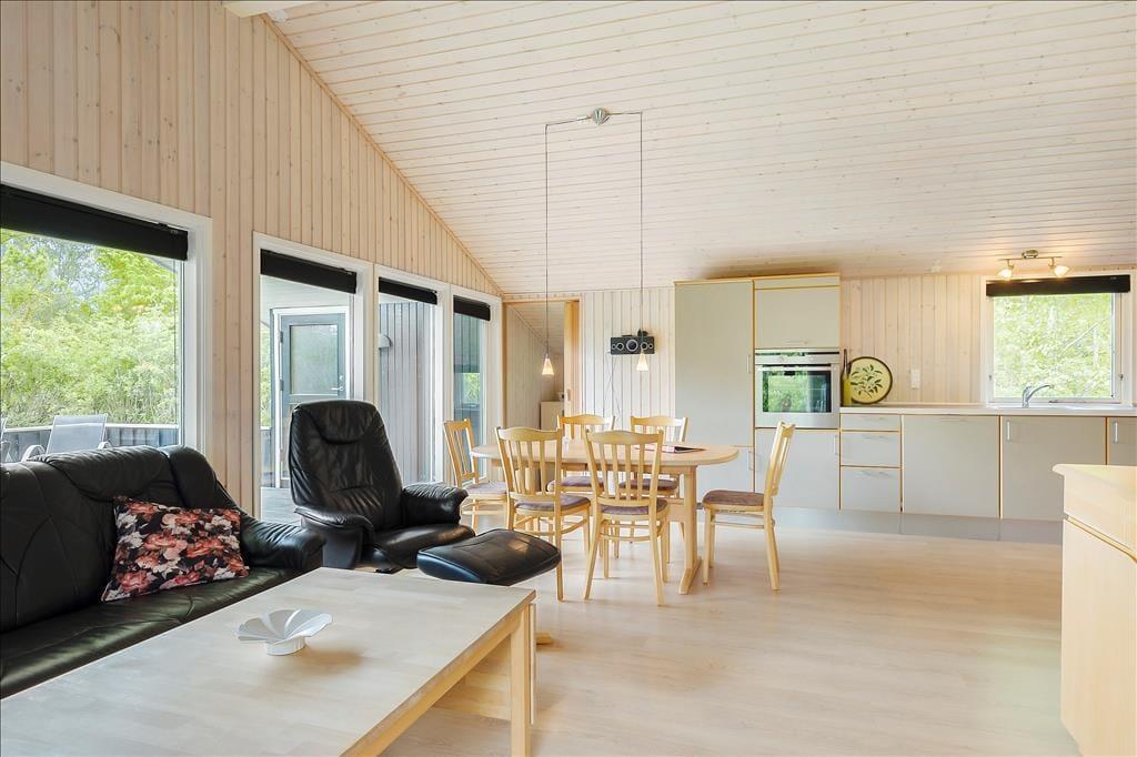 Das Ferienhaus empfängt dich mit einer warmen und einladenden Atmosphäre. Die hellen Wohnräume sind ideal für Entspannung und gemeinsame Zeit – ob mit einem guten Buch oder bei einem gemütlichen Abend mit der Familie. Die offene Verbindung zwischen Küche und Wohnzimmer schafft eine geräumige und gesellige Umgebung, in der ihr gemeinsam kochen oder Spiele spielen könnt. Die klassische und komfortable Einrichtung macht das Haus zu einer perfekten Basis für entspannte Urlaubstage.
