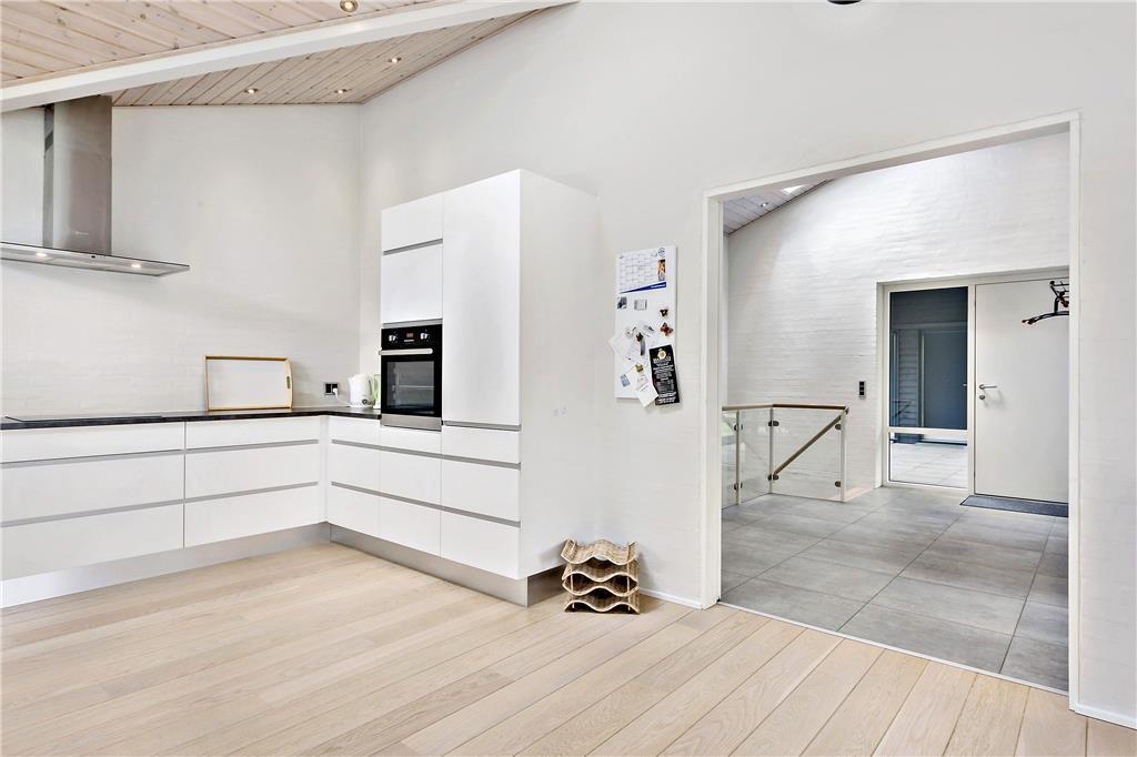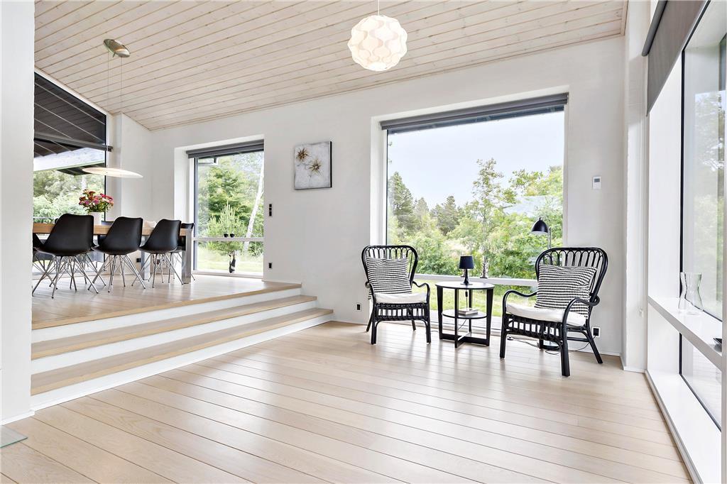 Das Ferienhaus empfängt Sie mit einer hellen und großzügigen Einrichtung, in der die hohen Decken eine offene und einladende Atmosphäre schaffen. Große Fensterpartien lassen die Natur draußen ganz nah erscheinen und laden viel Tageslicht in das Wohnzimmer ein. Die offene Küche und der Wohnbereich sorgen dafür, dass Sie stets in Gesellschaft Ihrer Liebsten sind – egal ob Sie kochen oder entspannen. Die Einrichtung ist ideal für entspannte Ferientage, ganz gleich, ob die Sonne scheint oder es regnet.