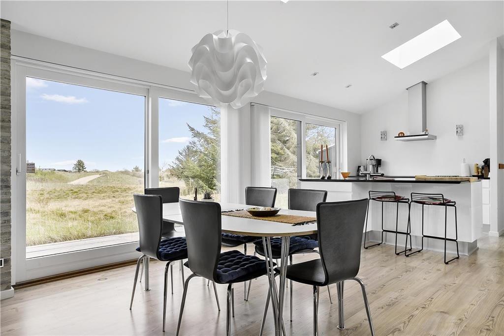 Das Ferienhaus empfängt Sie mit einer hellen und modernen Einrichtung, bei der große Fenster für viel natürliches Licht und ein Gefühl von Weite sorgen. Der offene Grundriss zwischen Küche und Wohnzimmer ermöglicht es, zusammen zu sein, egal ob Sie kochen oder sich mit einem Buch entspannen. Die geschmackvolle und gemütliche Einrichtung lädt zum Wohlfühlen ein, und aus fast jedem Raum genießen Sie einen Blick auf die umliegende Natur – oft mit Rehen oder Hasen als Nachbarn. Dieses Haus ist eine Oase der Ruhe und des Komforts.