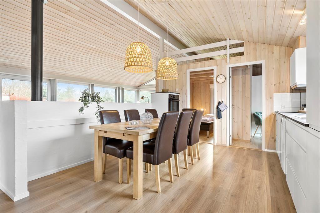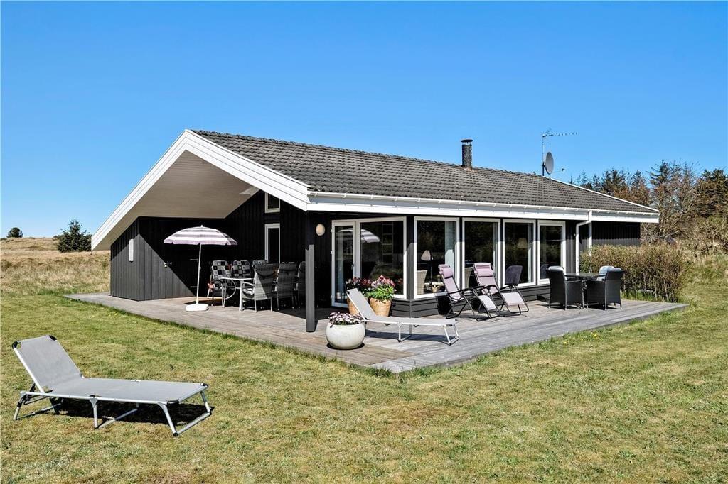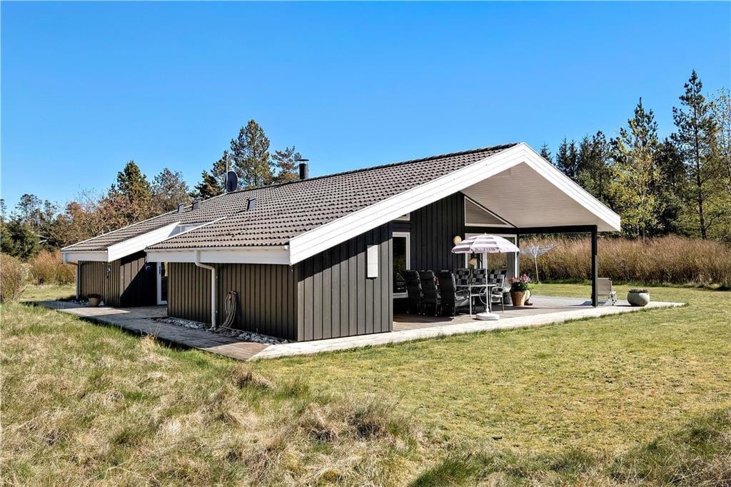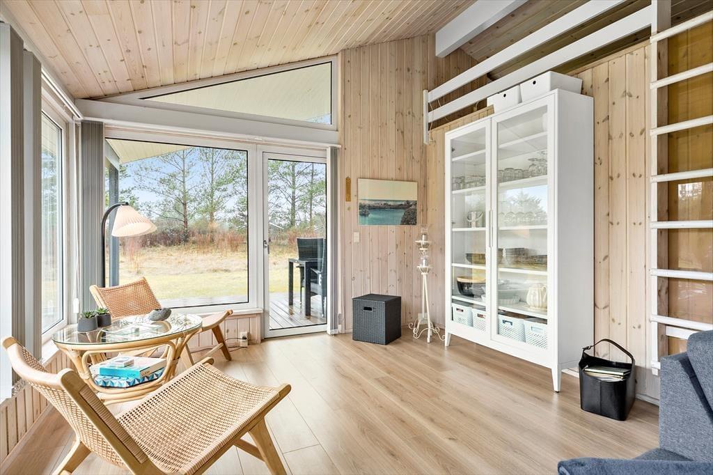 Das Ferienhaus liegt auf einem großen Naturgrundstück mit einer kleinen Rasenfläche, auf der die Kinder spielen können, während die Erwachsenen eine Tasse Kaffee in der Sonne genießen. Die ruhige Umgebung lädt dazu ein, abzuschalten und die Seele baumeln zu lassen. Auf der Terrasse kannst du dem Vogelgesang lauschen und die frische Luft aus der nahegelegenen Klitplantage genießen. Abends ist die Terrasse der perfekte Ort, um die Familie zu einem gemütlichen Grillabend zu versammeln und den Sonnenuntergang zu erleben.