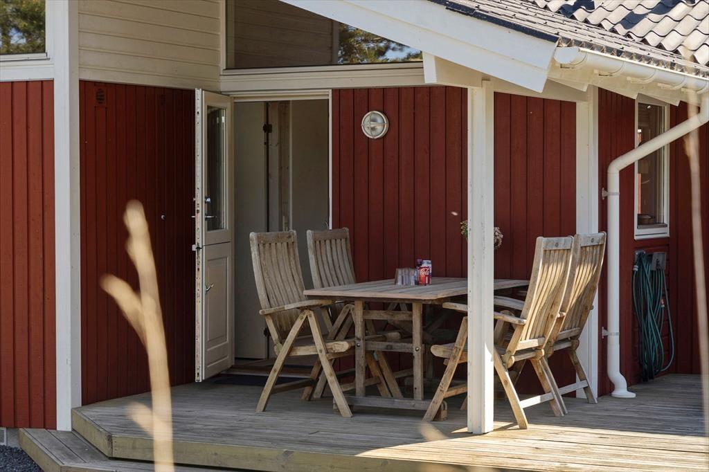Der große Terrassenbereich des Ferienhauses ist eines der Highlights des Hauses. Hier könnt ihr viele Stunden unter freiem Himmel verbringen, egal ob die Sonne scheint oder ihr in den schattigeren Ecken der Terrasse entspannen möchtet. Mit der Natur als Kulisse könnt ihr sowohl Privatsphäre als auch Ruhe genießen, während die Kinder frei in der grünen Umgebung spielen. Die Terrasse eignet sich auch perfekt für gemütliche Grillabende, bei denen ihr gemeinsam am Tisch sitzen und die langen Sommerabende mit Lachen und guten Gesprächen füllen könnt.